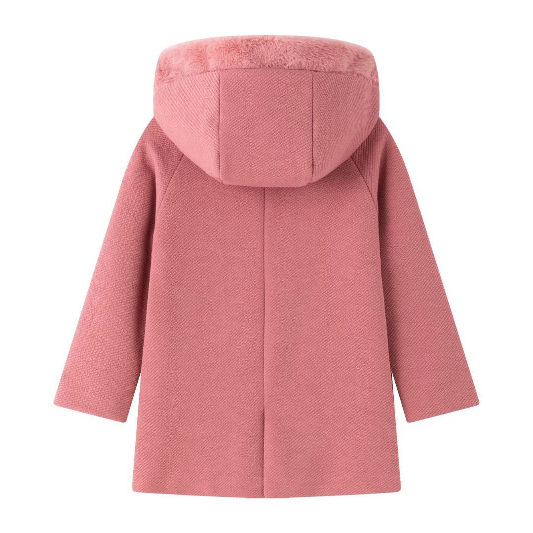 - Design: Übergangsmantel für Mädchen aus strukturiertem Stoff mit Kapuze und Fellbesatz