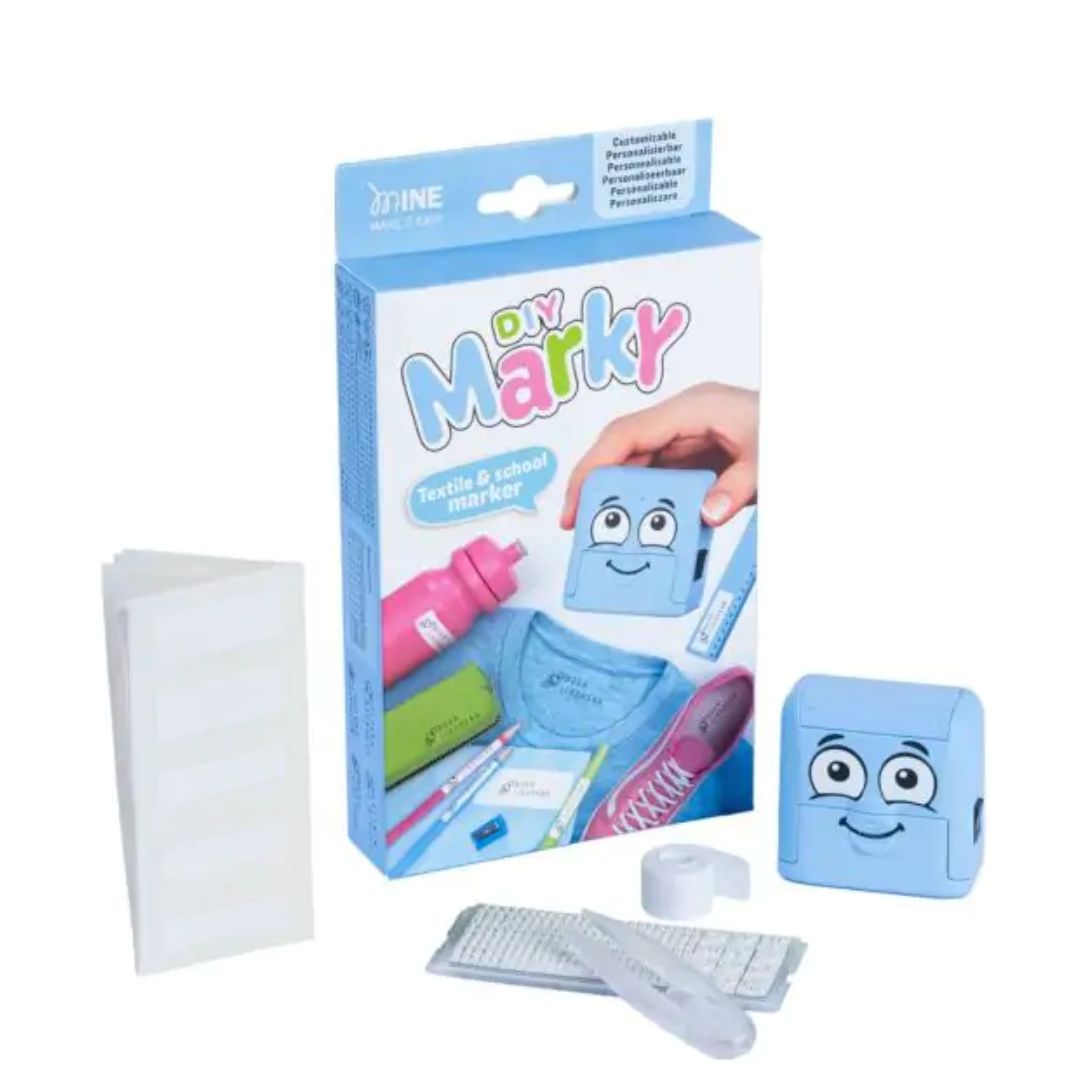 Dieser innovative Markierungsstempel bietet dir eine einfache Lösung, um Verwechslungen oder verlorene Gegenstände zu vermeiden. Ob für Schule, Sport oder Zuhause – mit Marky kannst du Kleidung, Papier, Etiketten und mehr personalisieren. Das Besondere: Er vereint Funktionalität mit Nachhaltigkeit und einem modernen blauen Look.