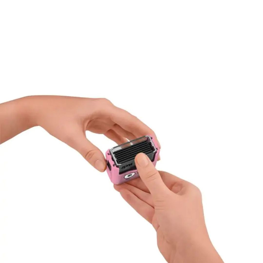 - Rosafarbenes Gehäuse mit ergonomischem Design für eine angenehme Handhabung
