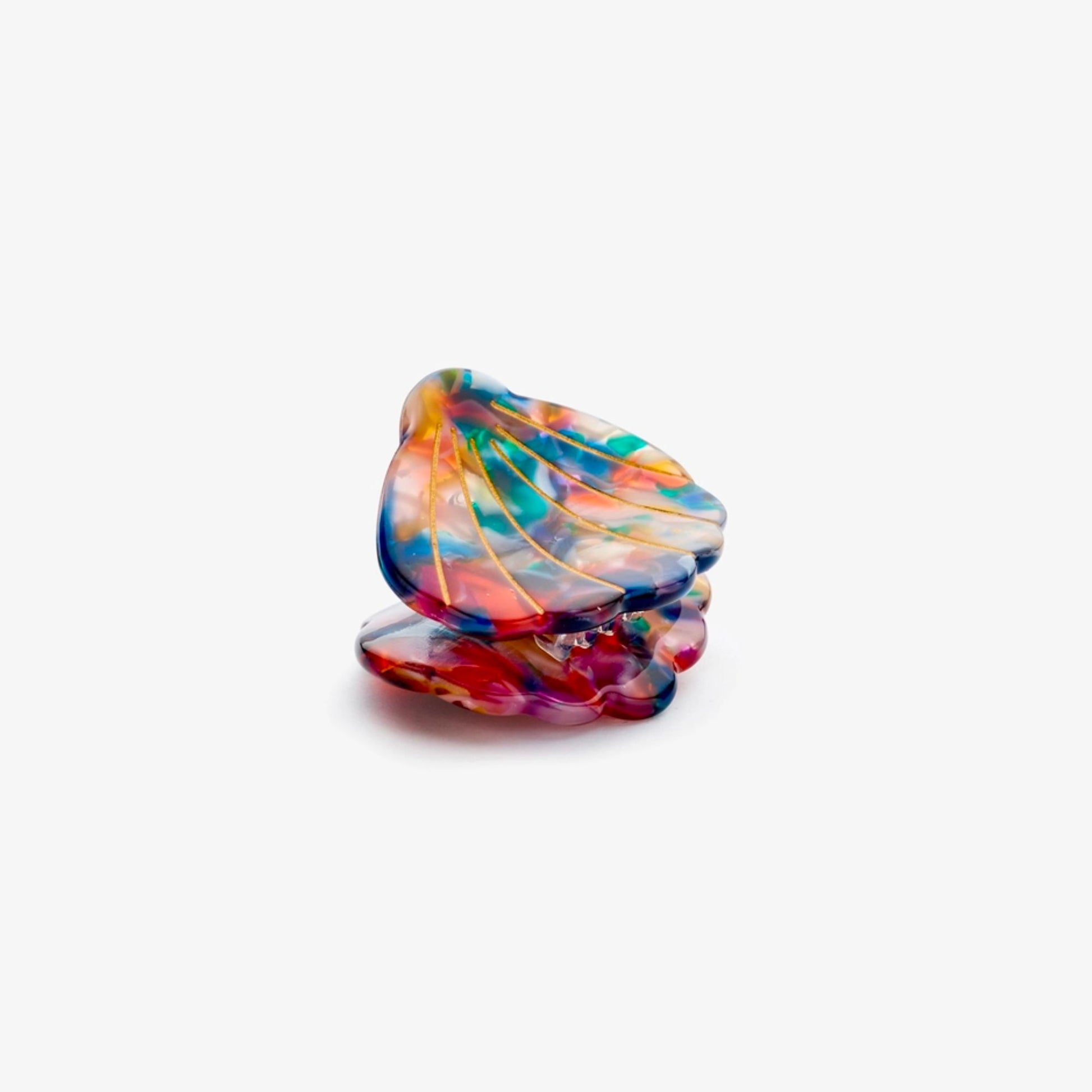 Die Haarklammer besteht aus Acryl und hat die Form einer Muschel. Die Länge beträgt 3,9 cm und die Breite beträgt 2,7 cm.