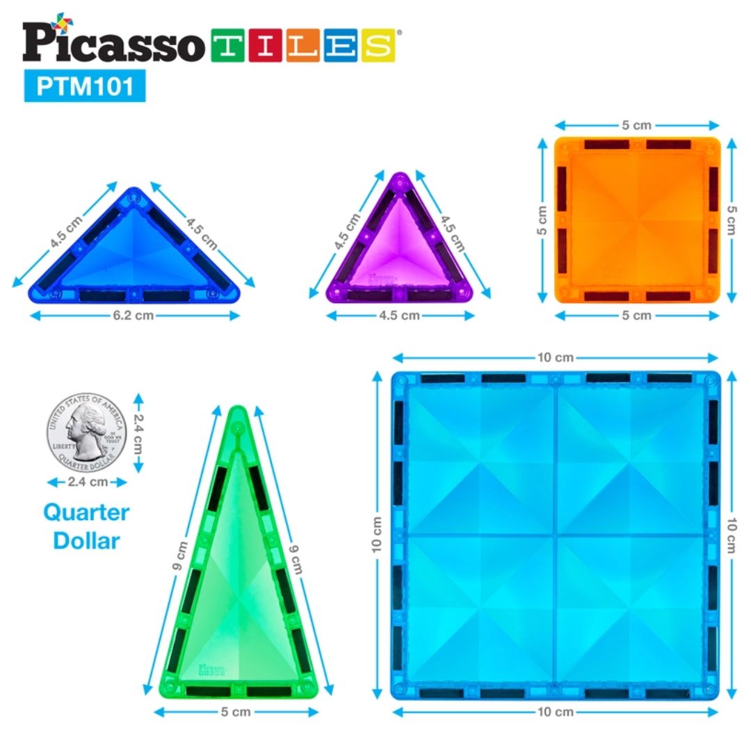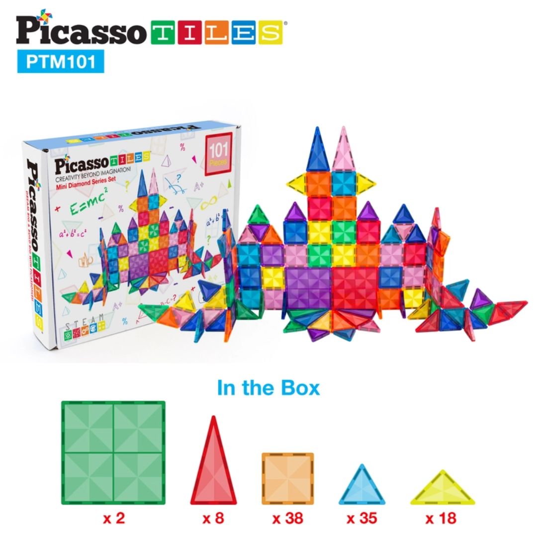 Das Mini Diamant Magnetbaustein-Set bietet dir unendlich viele Möglichkeiten, um kreative Konstruktionen zu erschaffen. Mit 101 Teilen kannst du kleine oder große Bauwerke gestalten und durch die skalierbare Bauweise deine Konstruktionen nach Belieben erweitern. Kombiniere das Set mit weiteren PicassoTiles Magnetbausteinen, um noch größere und beeindruckendere Strukturen zu erschaffen.