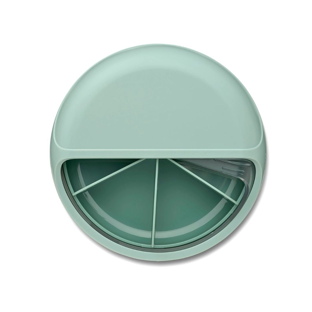 Kinder lieben Überraschungen – und genau das macht die Mini Snack Disc mintgrün so besonders. Sie besteht aus sechs einzeln drehbaren Fächern, die nach und nach geöffnet werden können. So wird die Snackzeit zur kleinen Entdeckungsreise: Drehen, öffnen, naschen – und neugierig sein, was als Nächstes kommt.