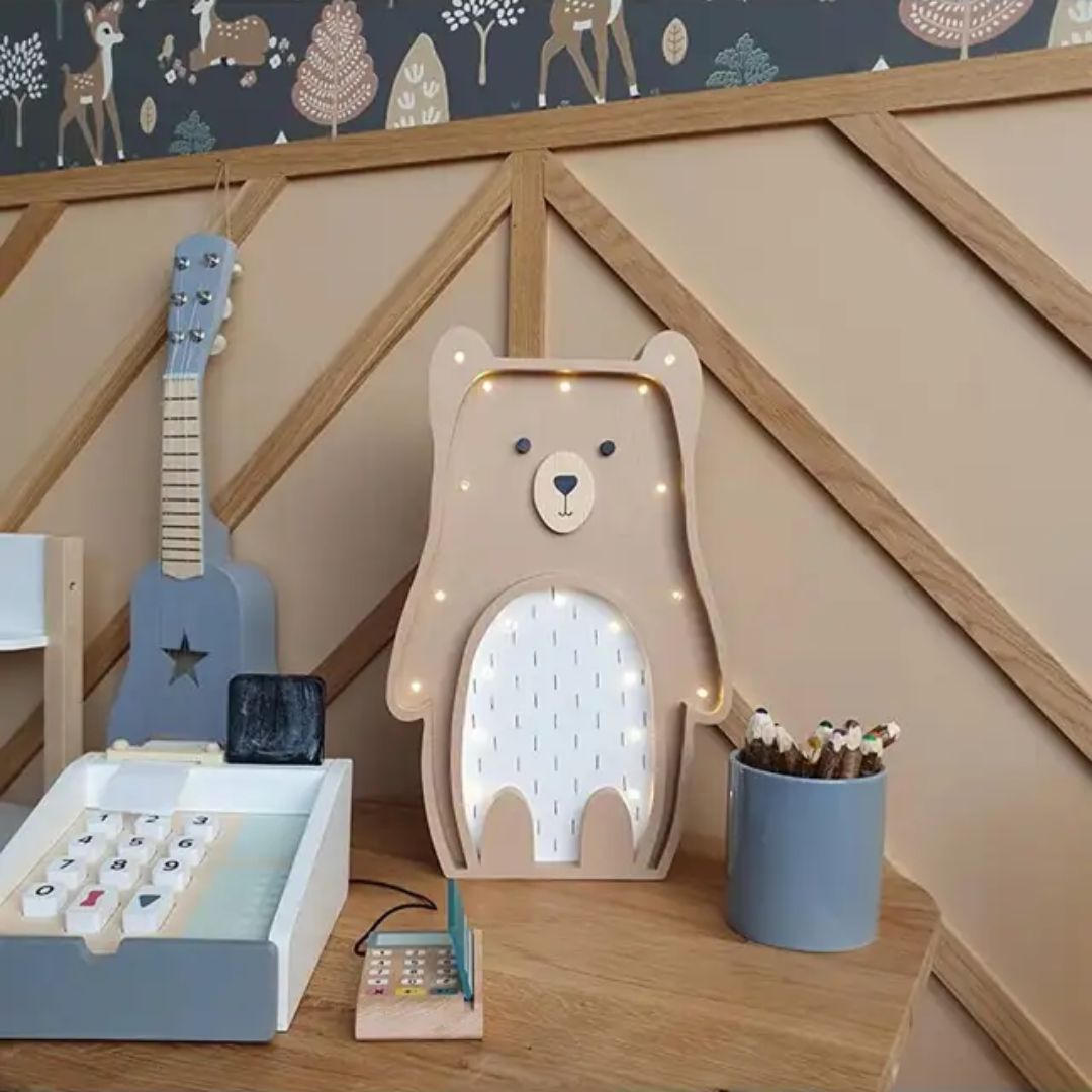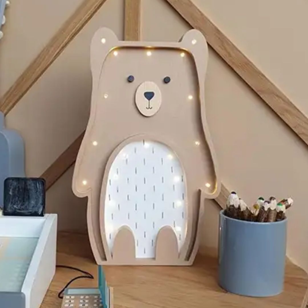 Ruhig und sicher - eine süße Nachtleuchte mit hyggeligem Licht: Die süße Nachtlampe erstrahlt im freundlichen Bär-Design und lässt eine angenehme Raumatmosphäre entstehen, in der sich Kleinkinder wohlfühlen und beruhigt einschlafen. Unser kleiner Bär leuchtet durch die Dunkelheit und wird zum Hüter über den Schlaf. Er ist eine wunderschöne Einschlafhilfe und ein zauberhaftes Accessoire im Kinderzimmer kleiner Süßlinge. Dank der LED-Technologie ist der Schlaf sicher und die Dunkelheit macht keine Angst mehr. Die Lampe kann die ganze Nacht eingeschaltet bleiben. Unser Deko-Licht ist von Hand gefertigt und mit viel Liebe zum Detail hergestellt. Traumhafte Lichtnuancen machen das Nachtlicht zu einem Highlight fürs Kinderzimmer.