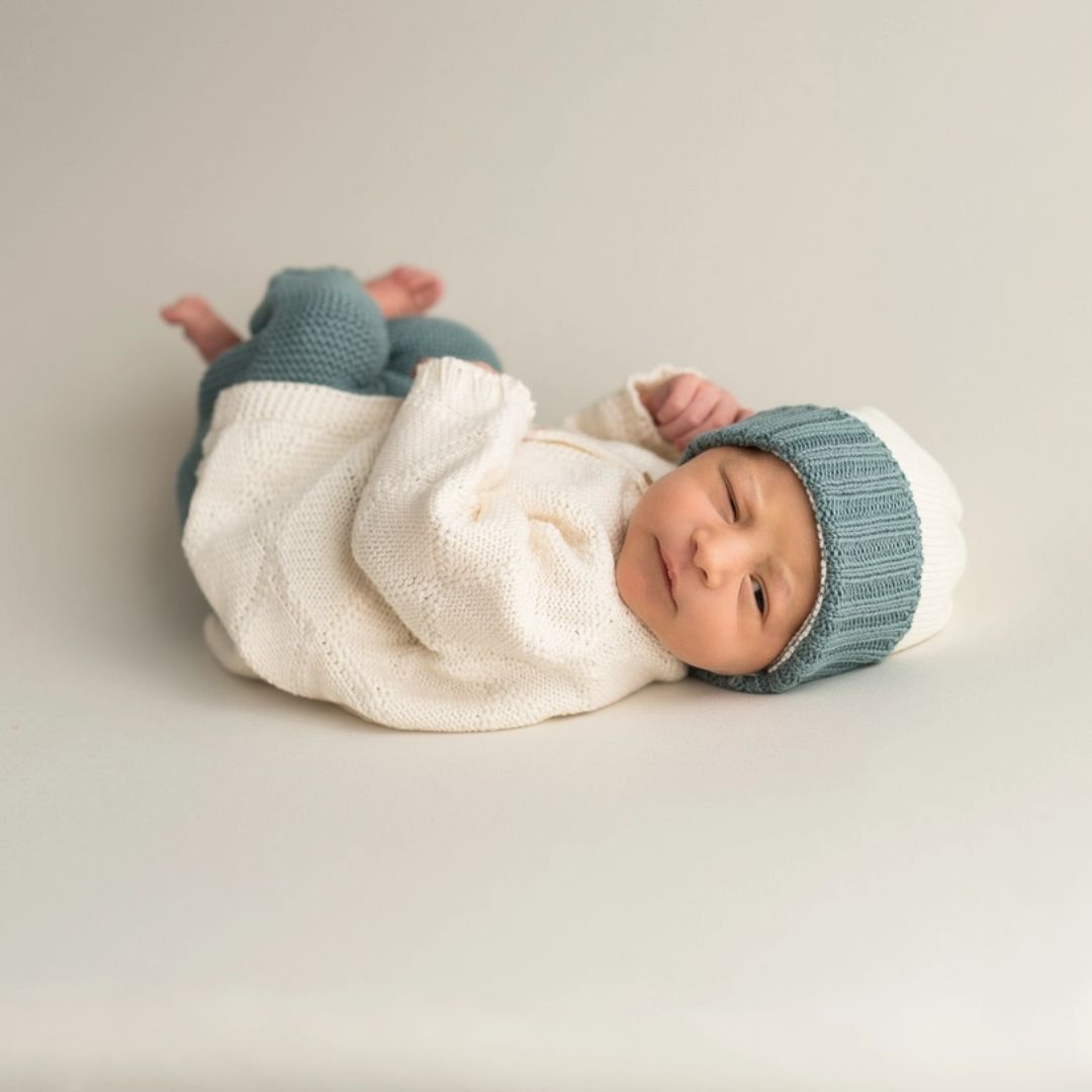 Unsere Perlstrick-Hose wird in Spanien mit größter Sorgfalt und viel Liebe zum Detail gefertigt. Dabei legen wir besonderen Wert auf nachhaltige Produktionsmethoden und faire Arbeitsbedingungen. So kannst Du sicher sein, dass Du ein Produkt erhältst, das nicht nur Deinem Baby, sondern auch der Umwelt guttut.