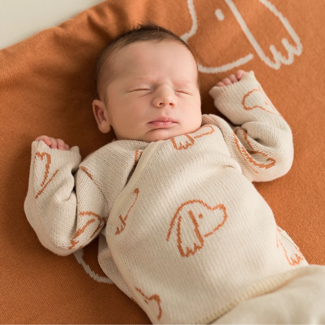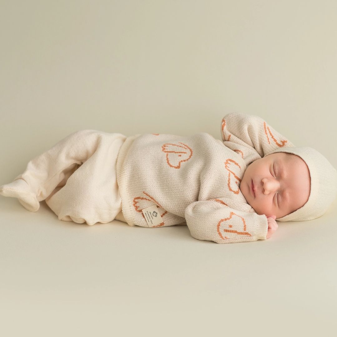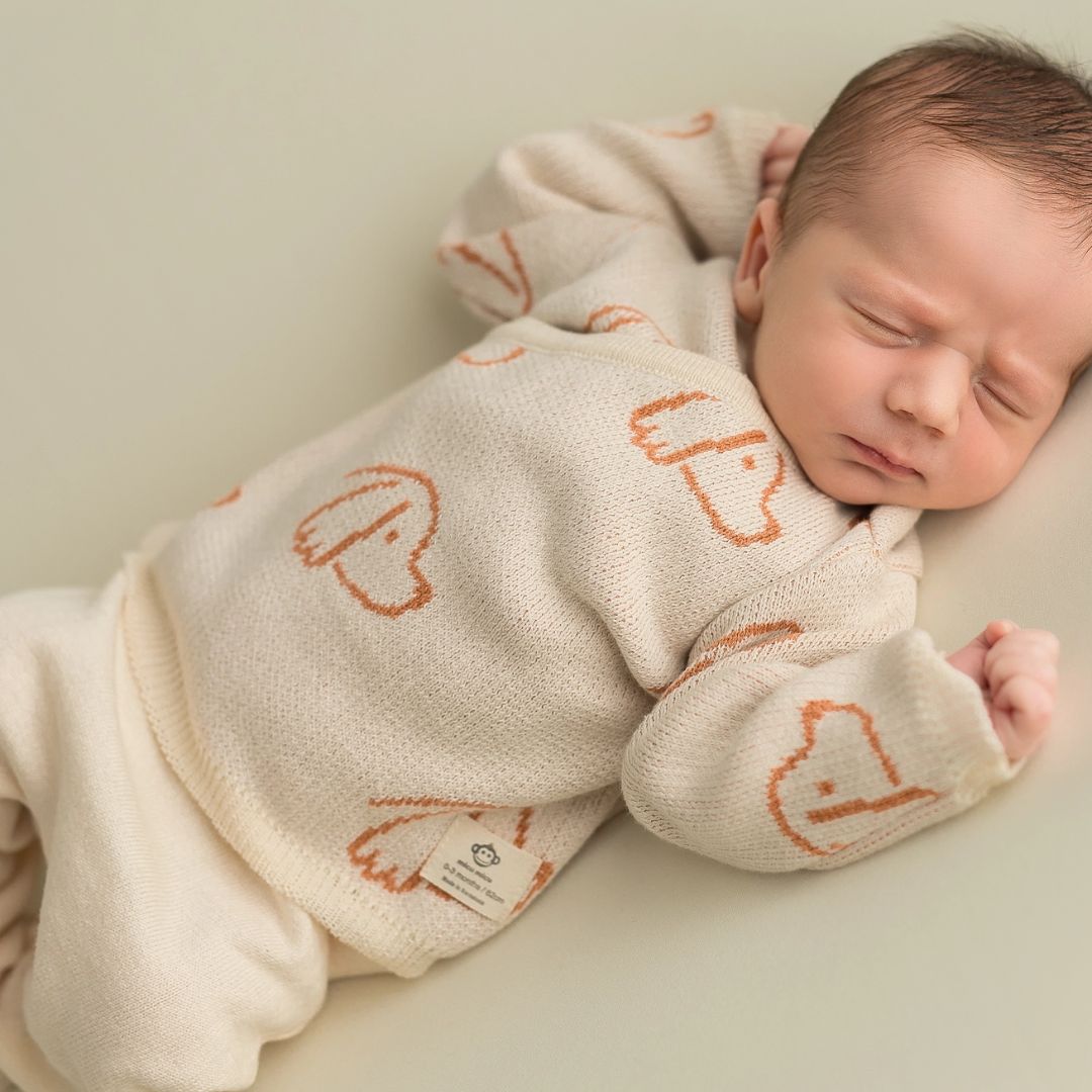 Unser Neugeborenen Set aus Jacke, Hose und Mütze in cremefarben ist die ideale Wahl für die erste Garderobe deines Babys. Mit seiner hochwertigen Bio-Baumwolle, dem durchdachten Design, dem süßen Hunde-Allover-Muster und den praktischen Details bietet es den Komfort und Schutz, den dein Baby braucht. Bestelle jetzt und erlebe die Freude, dein Baby in diesem wunderschönen und funktionalen Set zu sehen!