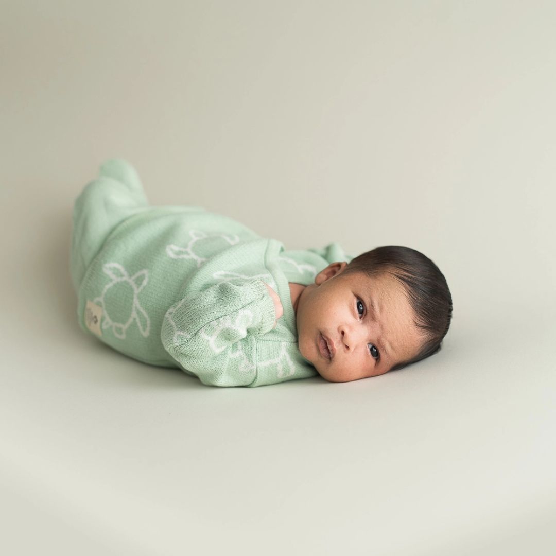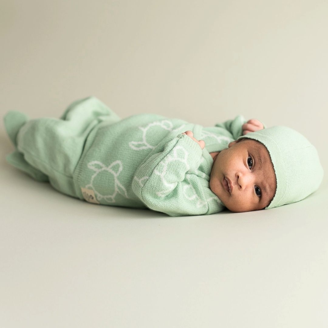 Neugeborenen-Set mit Schildkrötenmuster in Mintgrün – Sanfter Komfort für die ersten Tage