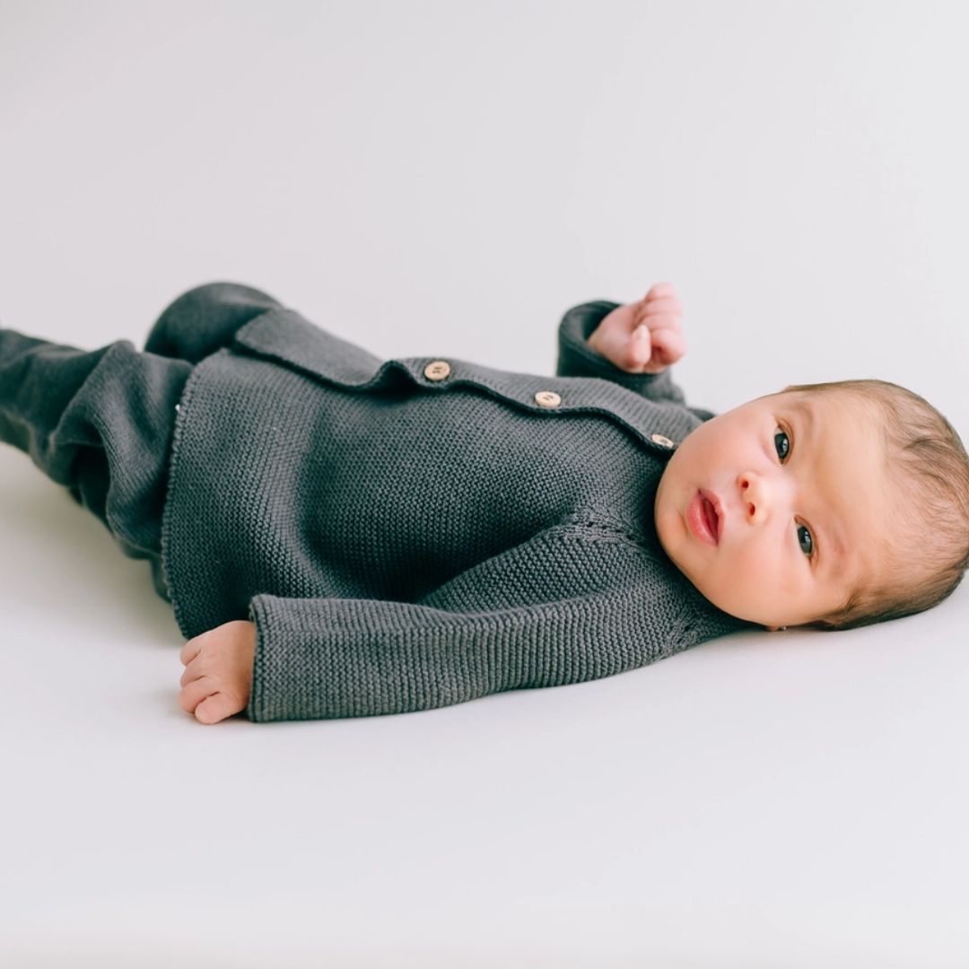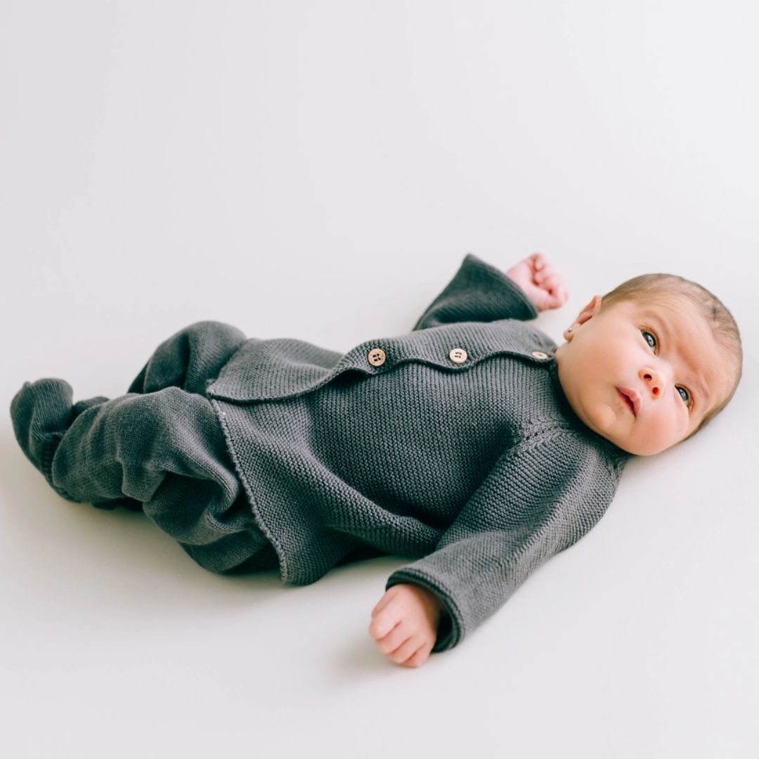 Neugeborenen- und Baby-Strickset in Anthrazit – Stil und Komfort für den ersten Lebensmonat