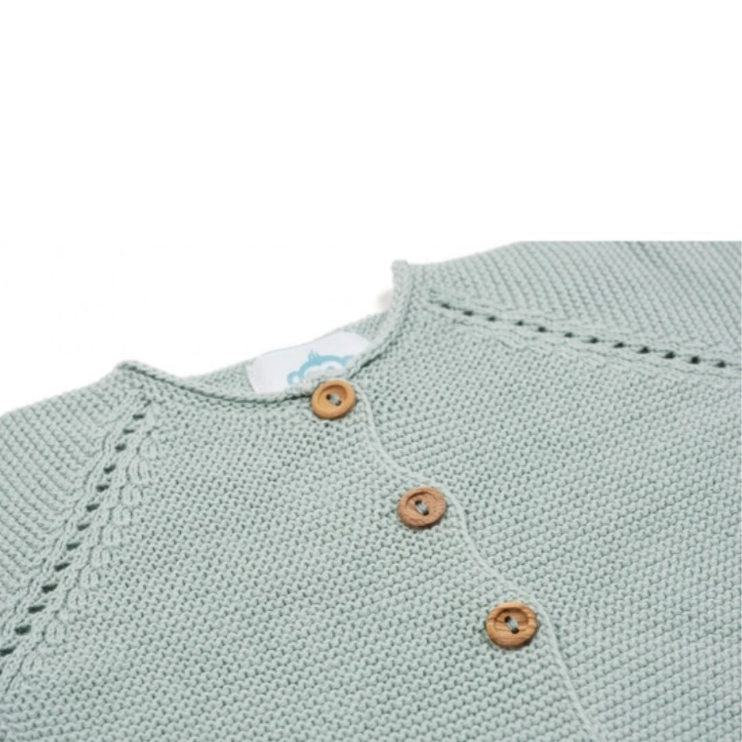 Das Neugeborenen und Baby Strickset in Mint wurde mit Blick auf die Bedürfnisse von Eltern und Babys entwickelt. Die Jacke lässt sich mit den Knöpfen schnell öffnen und schließen, was besonders praktisch ist, wenn es schnell gehen muss. Die Hose hat eine bequeme Passform und einen elastischen Bund, der für einen sicheren Sitz sorgt, ohne zu drücken. Diese praktischen Details machen das Strickset zu einem unverzichtbaren Bestandteil der Babygarderobe.