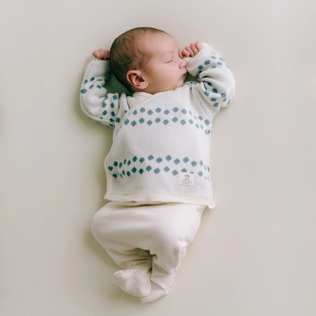 Die erste Garderobe für dein Baby sollte nicht nur praktisch sein, sondern auch höchsten Komfort und Schutz bieten. Unser Neugeborenen-Set Punkte Blau vereint all diese Eigenschaften in einem stilvollen, nachhaltigen Design. Hergestellt aus 100% Bio-Baumwolle in Barcelona, ist dieses Set perfekt für die ersten Wochen deines Babys. Es umfasst eine Jacke, eine Hose, einen Hut und eine wiederverwendbare Tasche – ein rundum durchdachtes Paket für deinen kleinen Schatz.