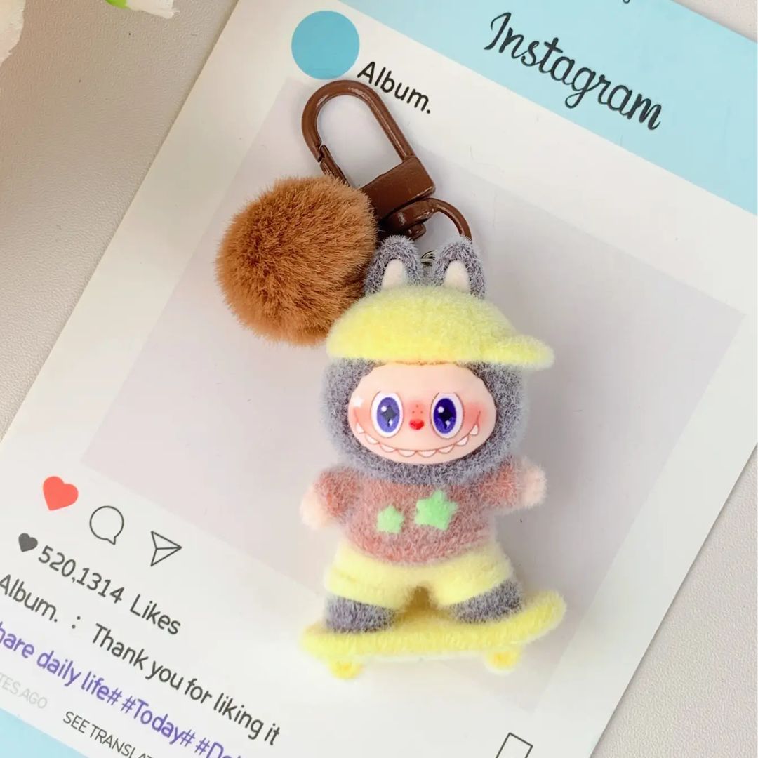 Niedlicher Labubu inspirierter Schlüsselanhänger Skateboard/braun