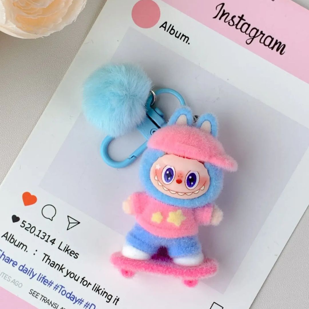 Niedlicher Labubu inspirierter Schlüsselanhänger Skateboard/pink
