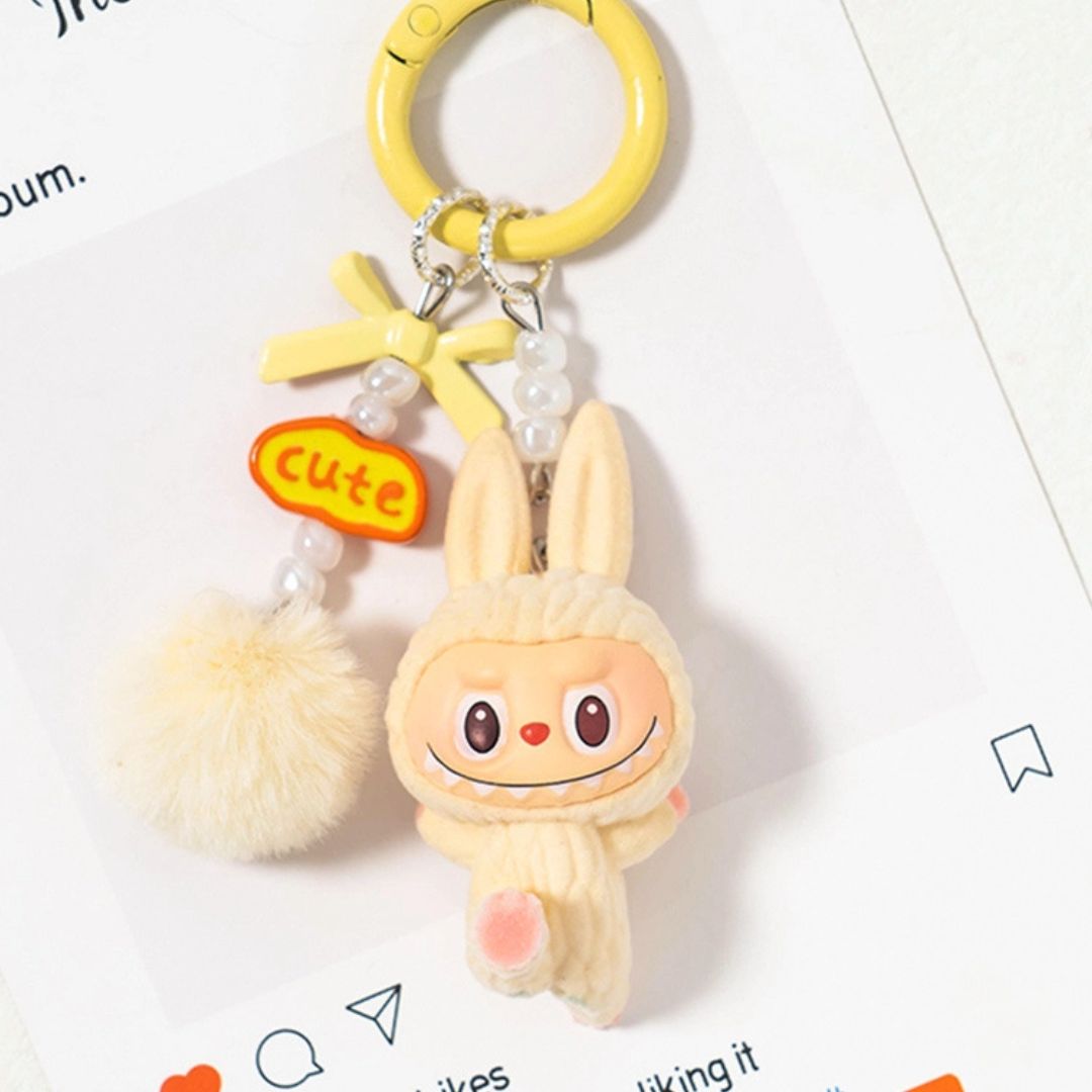 Niedlicher Labubu inspirierter Schlüsselanhänger 'Yoga' gelb