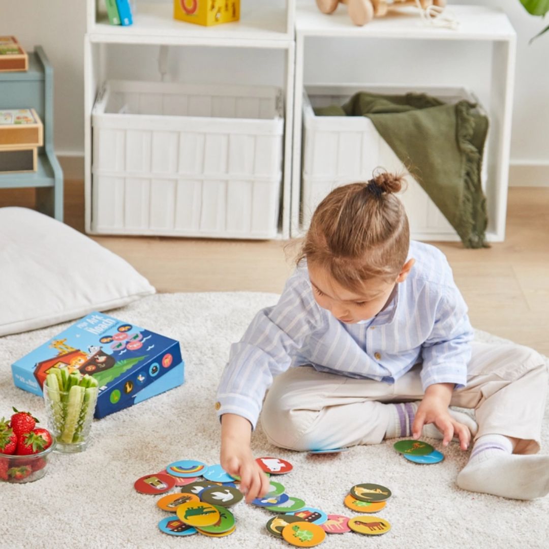Mit diesem Spiel können Kinder auf spielerische Weise mehr über die Tiere der Arche Noah erfahren. Jedes Kartenpaar erzählt eine kleine Geschichte, die dein Kind mit seiner eigenen Fantasie erweitern kann. Gleichzeitig fördert das Spiel wichtige Entwicklungsbereiche, ohne dass es sich wie Lernen anfühlt.