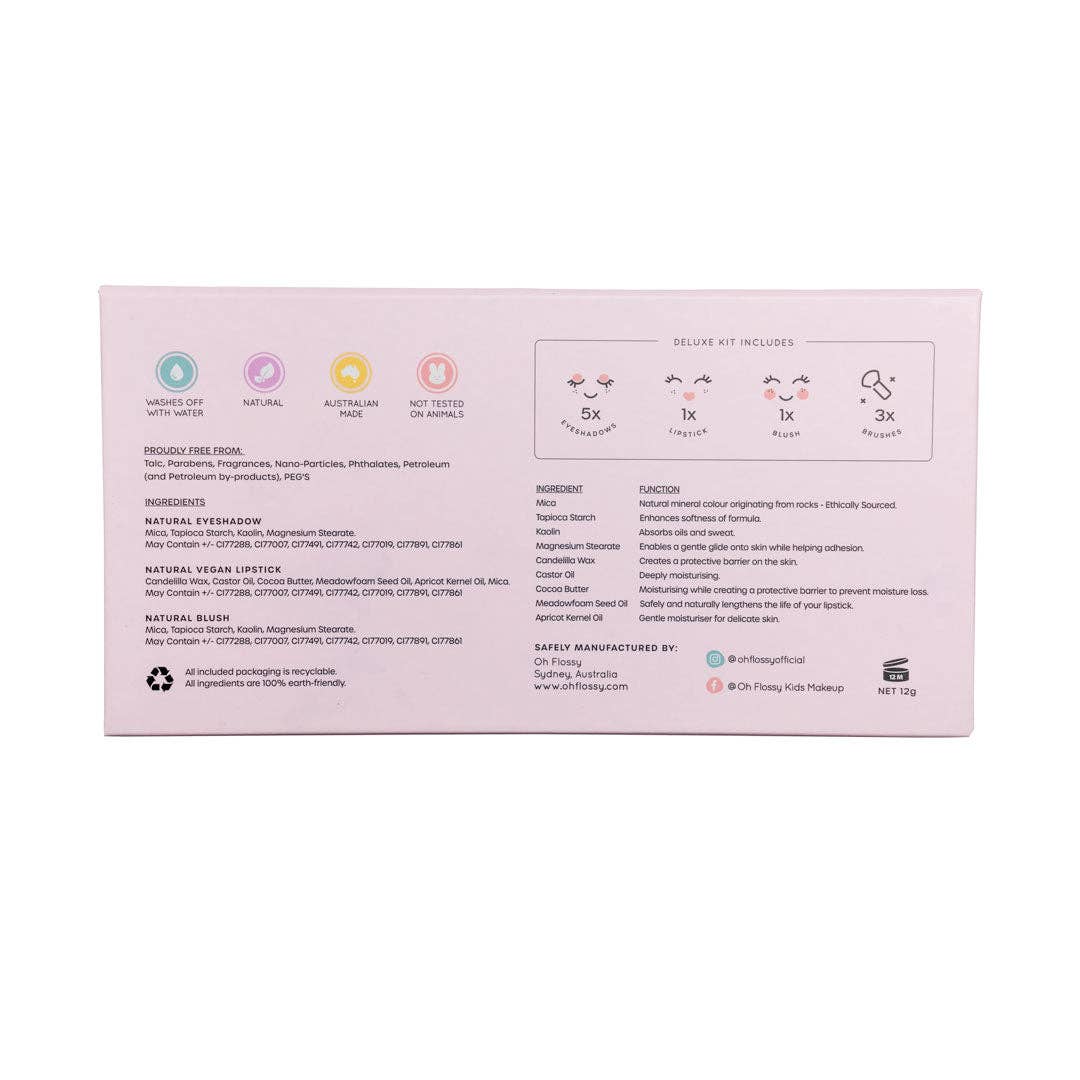 Unser Deluxe Set ist bei Eltern und Kindern gleichermaßen beliebt, und das aus gutem Grund! Wir verstehen, dass Eltern besorgt darüber sind, welche Produkte ihre Kinder auf ihre empfindliche Haut auftragen. Deshalb wurde dieses Set entwickelt, das speziell auf die Bedürfnisse junger Haut abgestimmt ist. Die Farben sind nicht nur süß und farbenfroh, sondern auch schimmernd und für stundenlangen Spaß konzipiert.