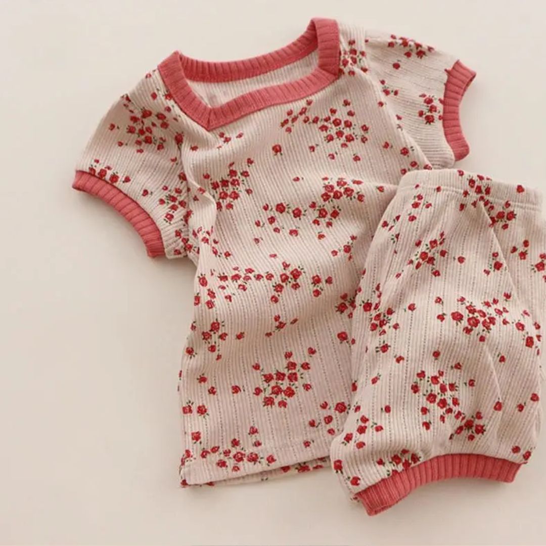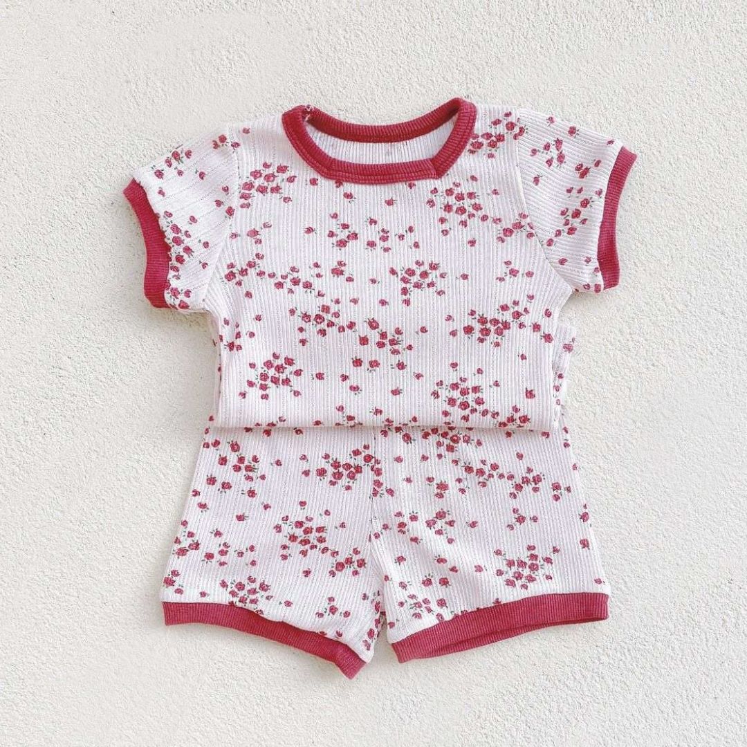 Produktinformationen Outfit Set Shorts und T-Shirt Blumen rot: