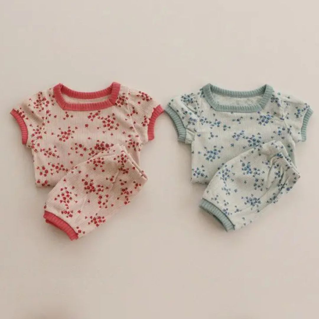 Ein entzückendes Outfit-Set für Kleinkinder bestehend aus einer Shorts und einem T-Shirt mit niedlichem Blümchen-Allover-Print, der dem Set eine verspielte und fröhliche Ausstrahlung verleiht. Kleine Blumenmotive sind liebevoll gestaltet. Perfekt für kleine Süßlinge, die einen verspielten und trendigen Look lieben. Eine tolle Kombination um sich frei zu bewegen und zu spielen.