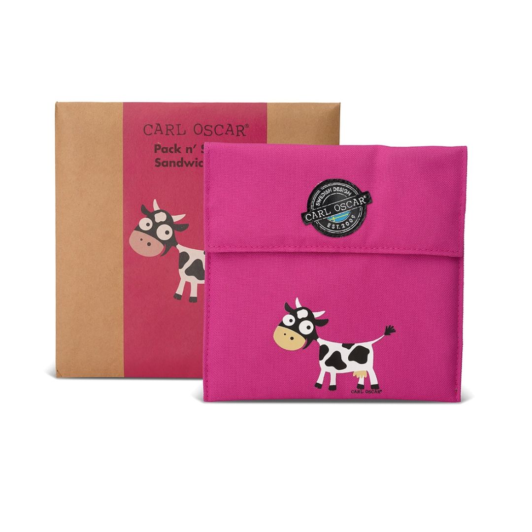 Die Pack n' Snack™ Sandwichtasche in elegantem Violett und einem charmanten Kuh-Design von Carl Oscar bietet eine umweltfreundliche und praktische Lösung für den täglichen Snack-Transport. Diese wiederverwendbare Tasche kombiniert nachhaltiges Design mit Funktionalität und sorgt dafür, dass deine Snacks sicher und frisch verpackt sind – egal, ob für Schule, Arbeit oder unterwegs.