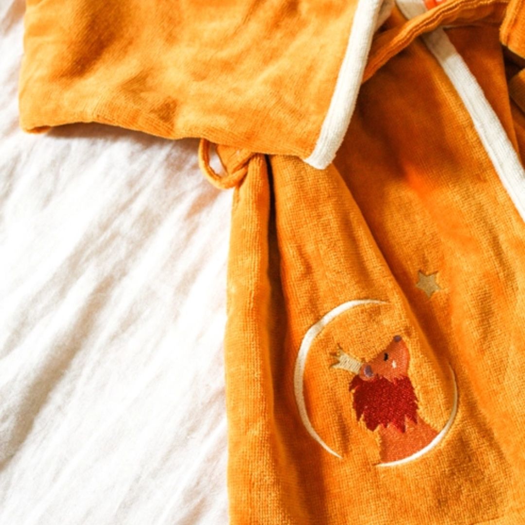 Personalisierbarer Bademantel 2-6 Jahre - Löwe Safrangelb