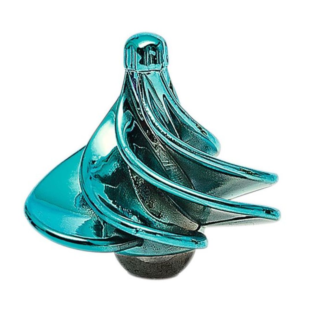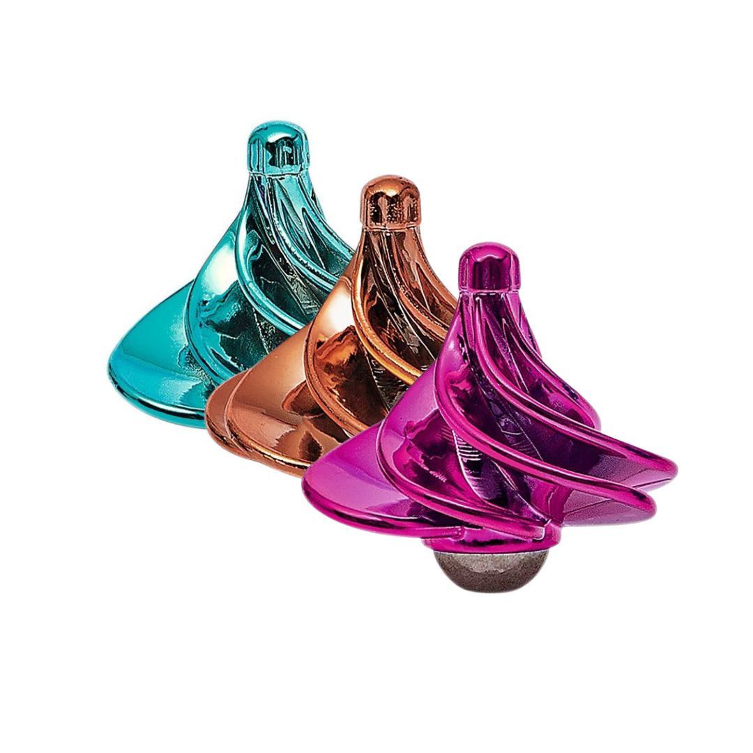 Dieser glänzend schimmernde Kreisel zeigt auf faszinierende Weise, wie Luft Bewegung erzeugt: Einfach pusten – und schon beginnt sich der metallische Kreisel wie von Zauberhand zu drehen.