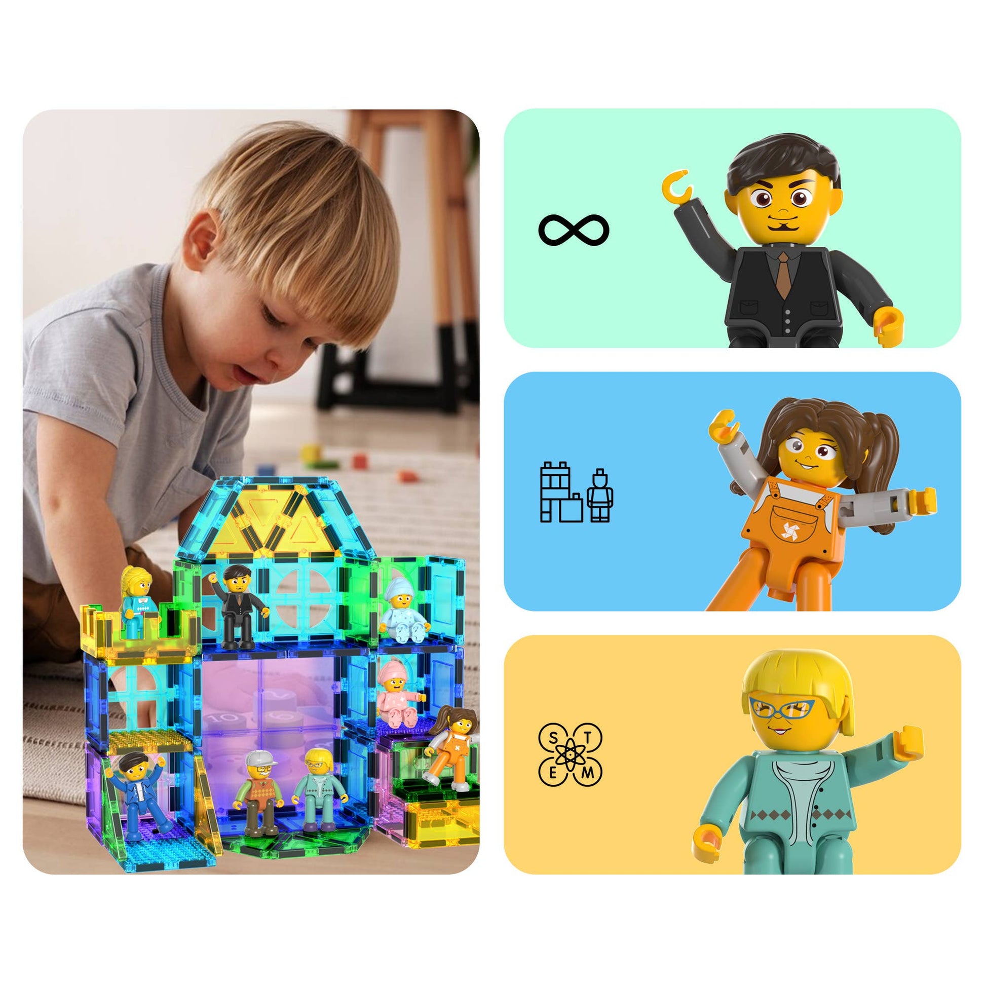 Die magnetischen Figuren lassen sich ideal mit anderen PicassoTiles oder ähnlichen magnetischen Bausteinsystemen kombinieren. Dein Kind kann sie als Bewohner von selbstgebauten Häusern, Schulen oder ganzen Dörfern einsetzen.