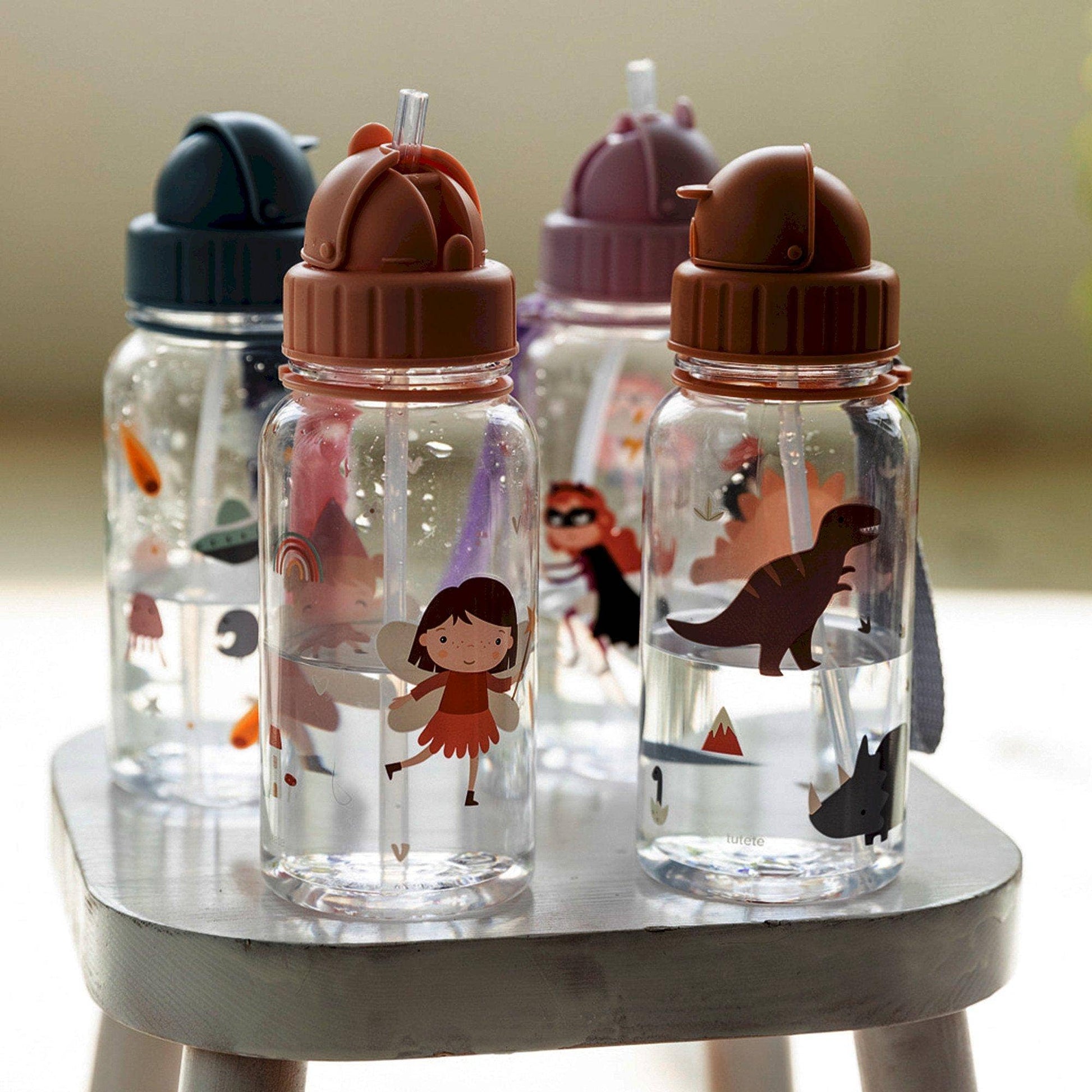 Dieses neue Modell gesunder Kunststoff-Flaschen hat einen faltbaren Silikonstrohhalm, der beim Öffnen des Deckels automatisch herauskommt und sich ideal zum Mitnehmen in die Schule eignet. Es hat einen langen Griff, mit dem du es hängend im Rucksack oder im Kinderwagen tragen kannst.