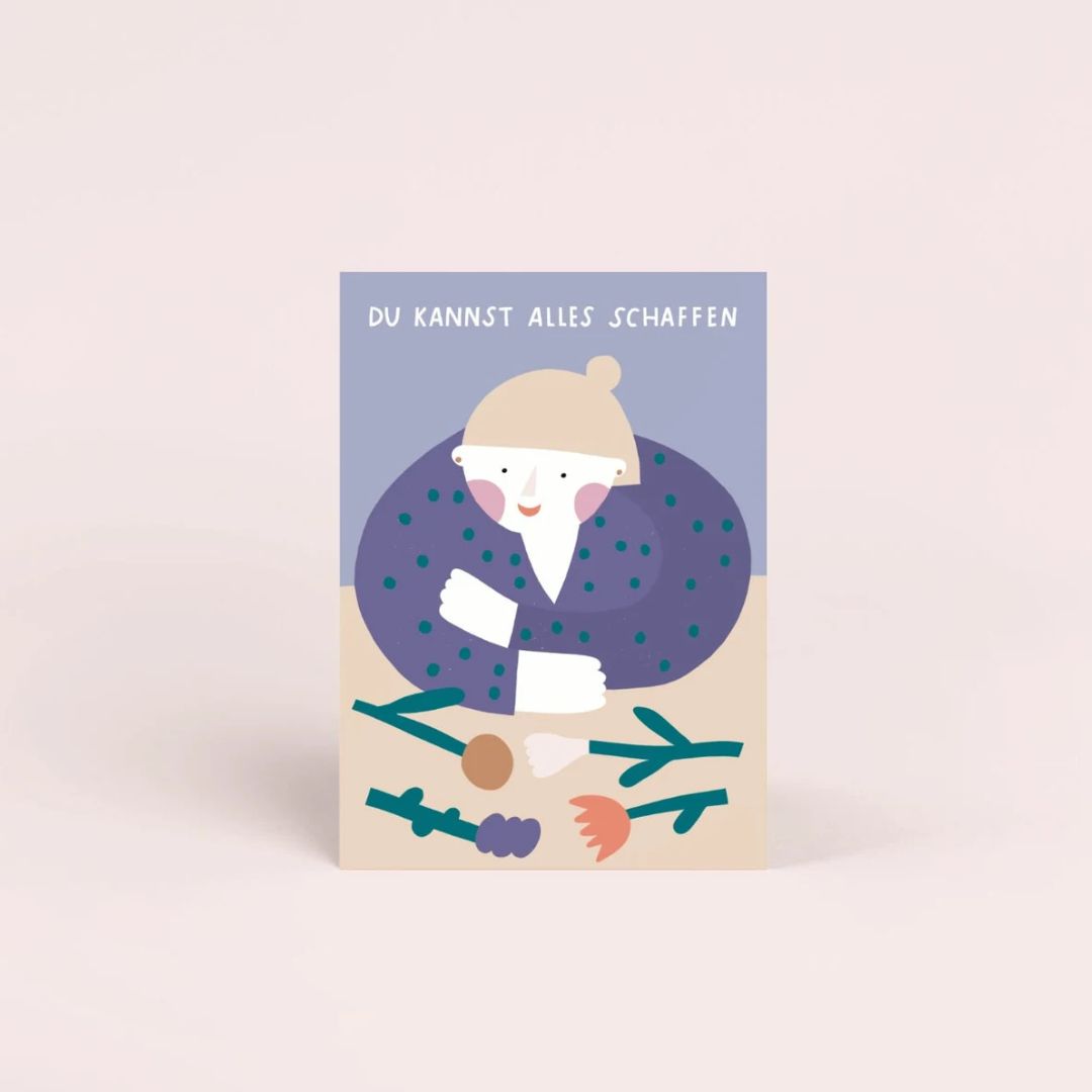 Die Postkarte "Du kannst alles schaffen" ist nicht nur eine einfache Karte. Sie ist ein Statement, das dich daran erinnert, dass du jede Herausforderung meistern kannst. Egal, ob du vor einem wichtigen Projekt stehst, eine Entscheidung treffen musst oder einfach eine Aufmunterung brauchst – diese Karte ist wie ein kleiner Coach in deiner Tasche.