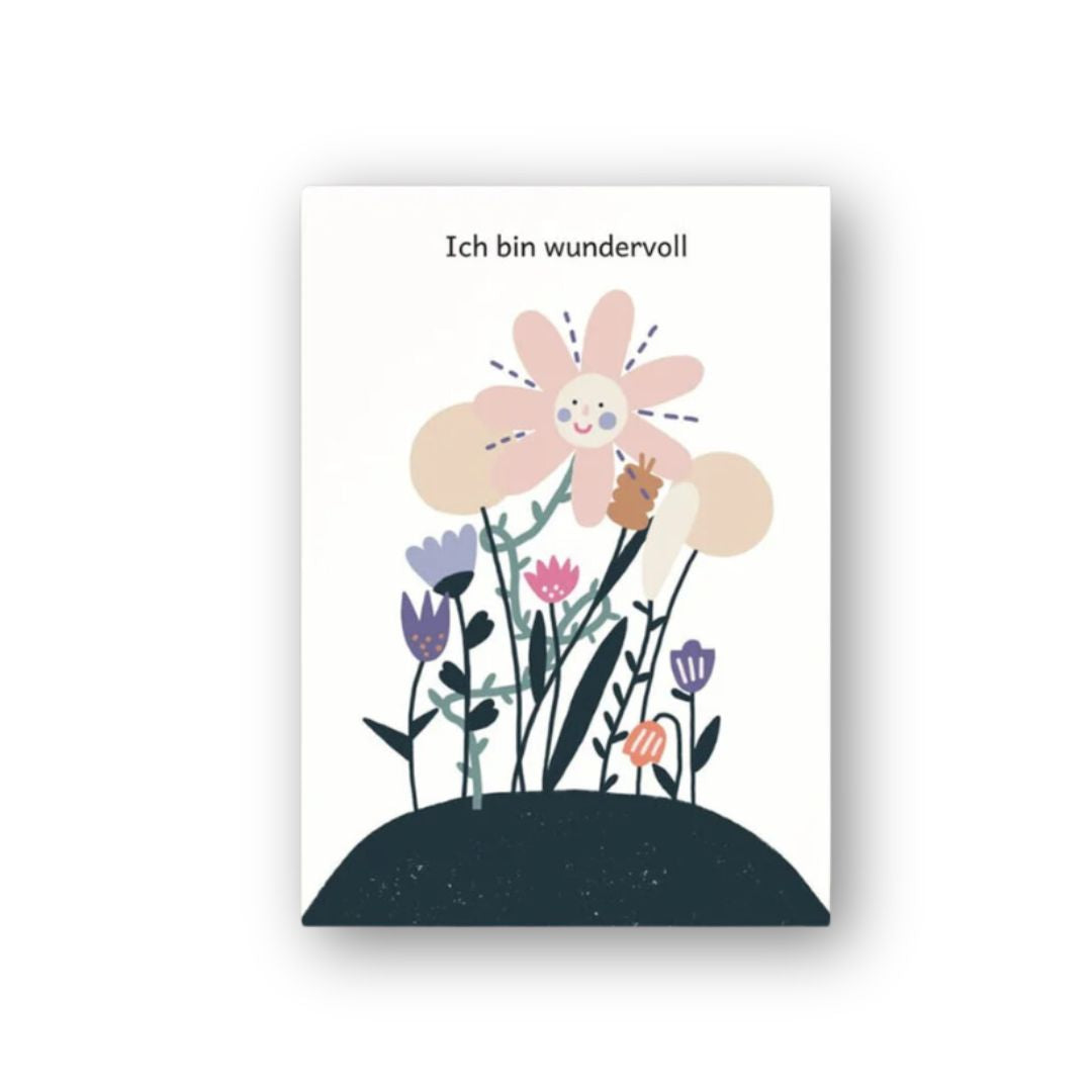 Diese Affirmations-Postkarte ist ein wunderbares Geschenk, um Kindern zu zeigen, wie wundervoll sie sind – genau wie jede einzelne Blume auf einer großen bunten Wiese.