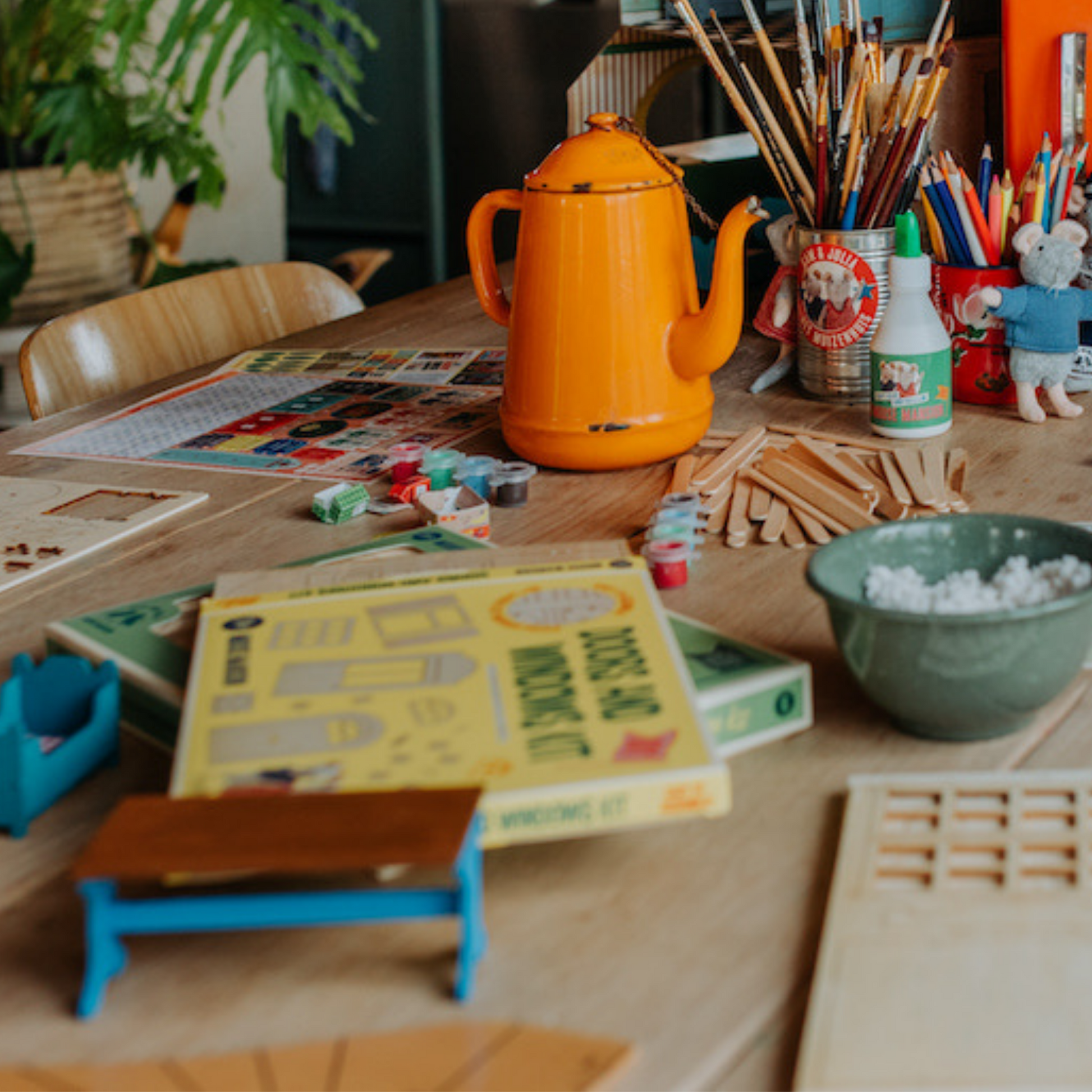 Mit diesem Kit können Sie Ihren Räumen Türen und Fenster im Stil der ursprünglichen Mouse Mansion hinzufügen. Die Möbelteile sind auf vier Holzplatten aufgeteilt. Sie können die lasergeschnittenen Teile einfach aus den Platten schieben und sie wie ein 3D-Puzzle zusammensetzen.
