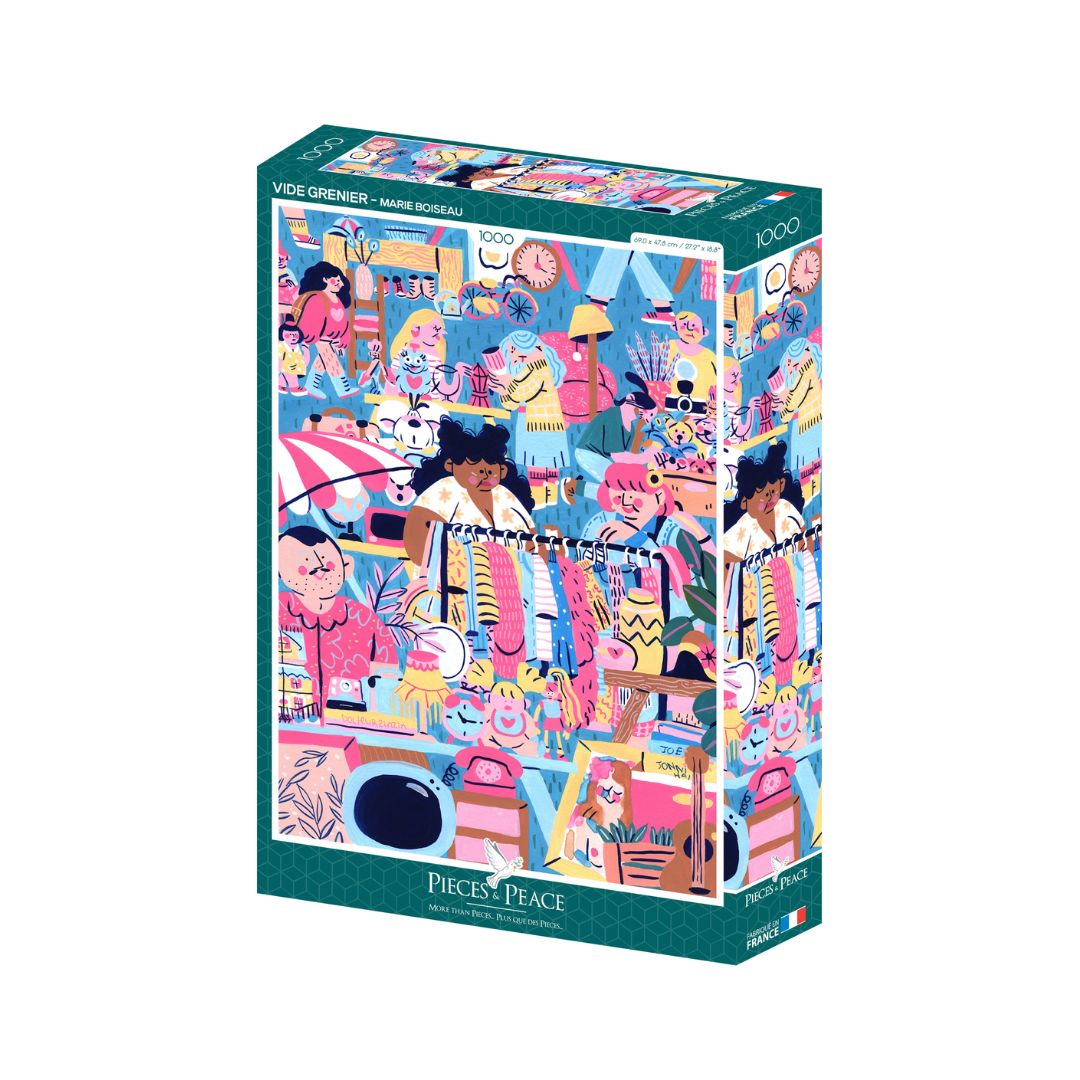 Puzzeln ist mehr als nur ein Zeitvertreib – es ist eine wunderbare Möglichkeit, den Alltag hinter sich zu lassen und abzuschalten. Mit dem 'Garagen Sale'-Puzzle kannst du dich stundenlang in die farbenfrohe Welt von Marie Boiseau vertiefen und die kleinen Geschichten der dargestellten Figuren entdecken.