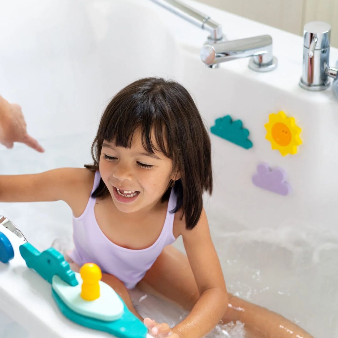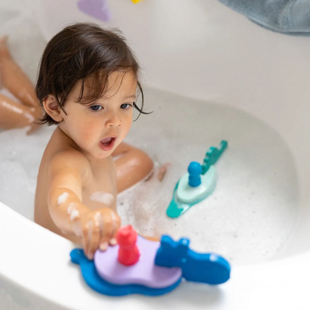 Wenn du möchtest, kannst du gemeinsam mit deinem Kind die Tiere benennen oder kleine Aufgaben stellen – etwa das Krokodil an einer bestimmten Stelle zu platzieren oder das Flusspferd zum Dschungelrand zu führen. Diese kleinen Interaktionen machen die Badezeit zu einem wertvollen Moment voller Nähe und Freude.