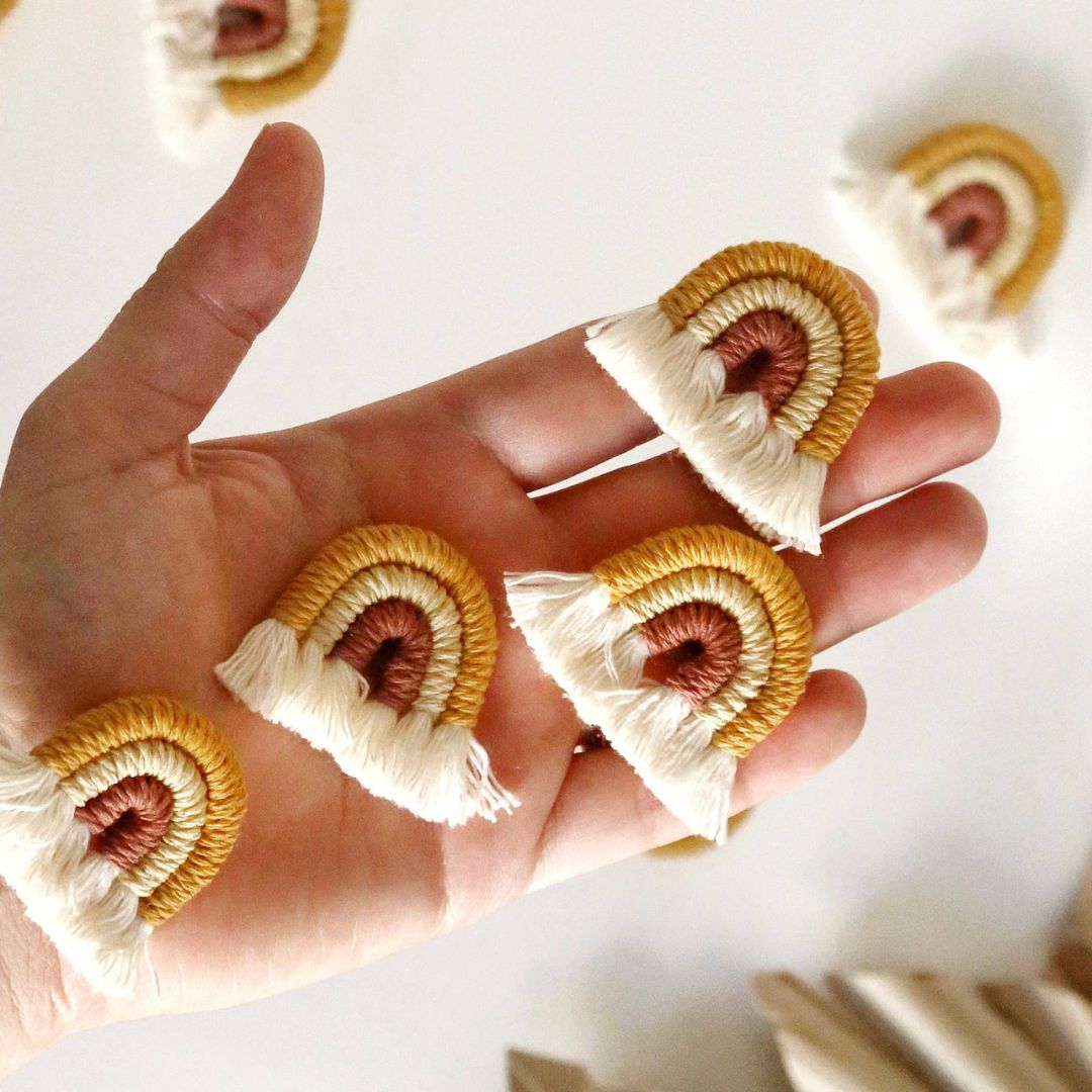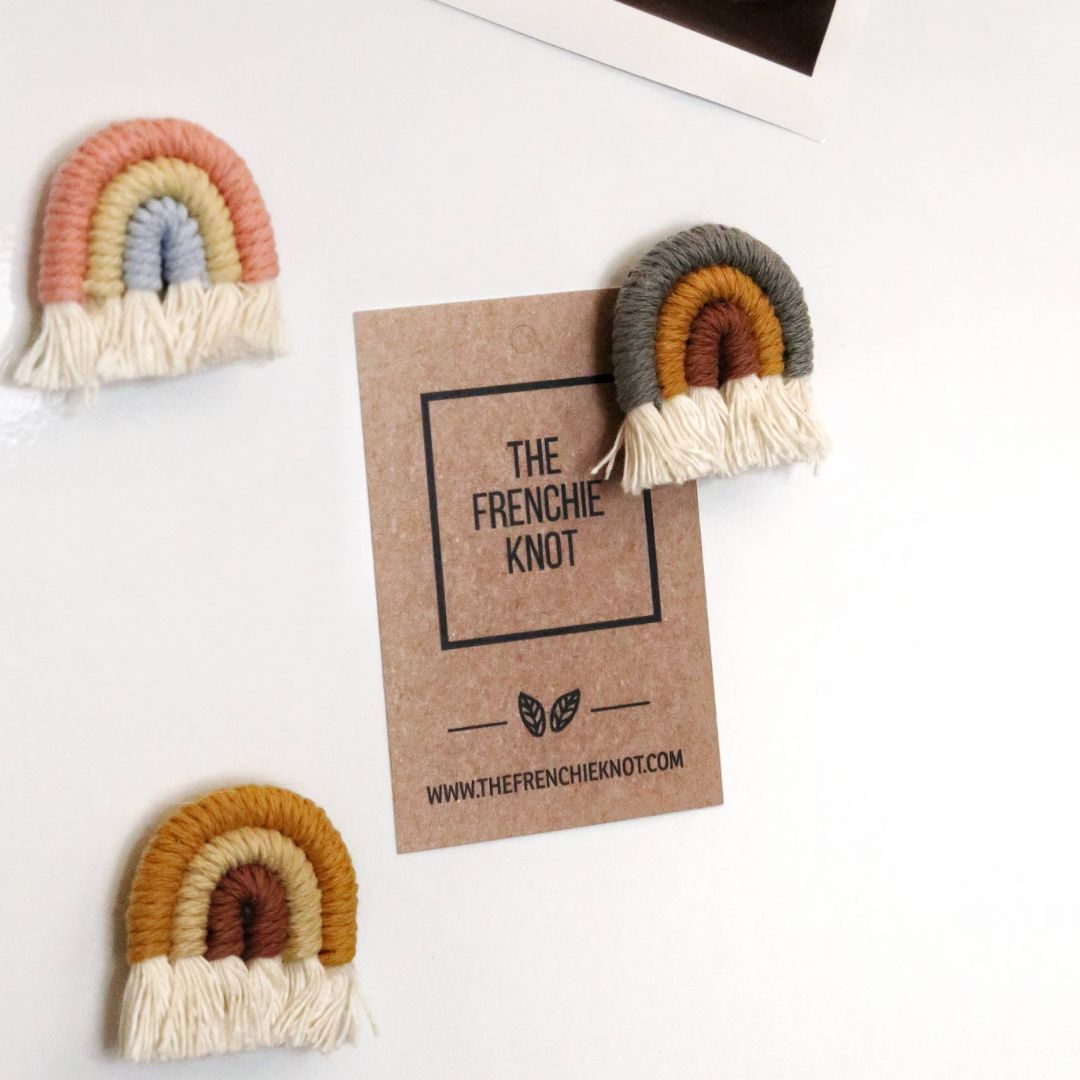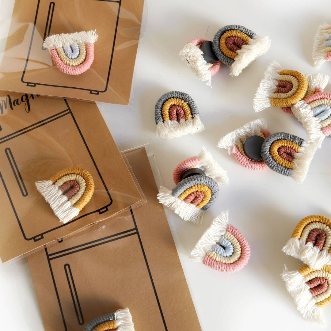 Umweltfreundliche Makramee-Magnete. Perfekte kleine Ergänzung von Boho Touch für deinen Kühlschrank oder auf Magnettafeln in deinem Heimbüro oder Kinderzimmer.