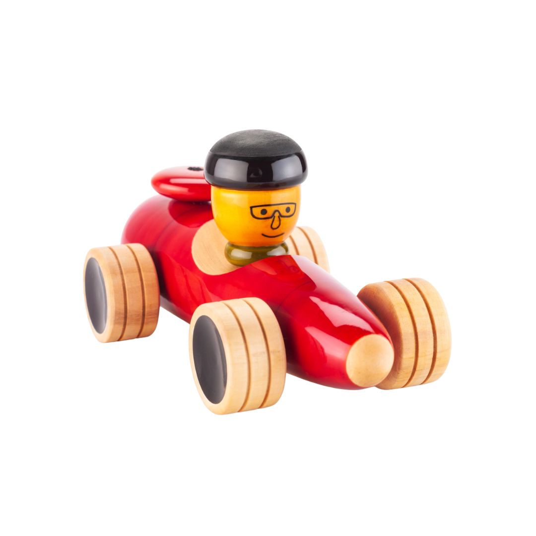 Der ca. 18 cm hohe Rennwagen von Maya Organic ist ein wunderschönes Holzspielzeug, das mühelos jedes Matchbox-Auto überholt. Die Achsen sind robust verarbeitet, ermöglichen perfektes Kurvenfahren und das Fahrzeug ist dank der chemiefreien Farbgebung umweltfreundlich und hinterlässt keine Abgase!