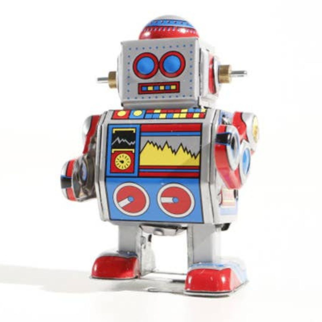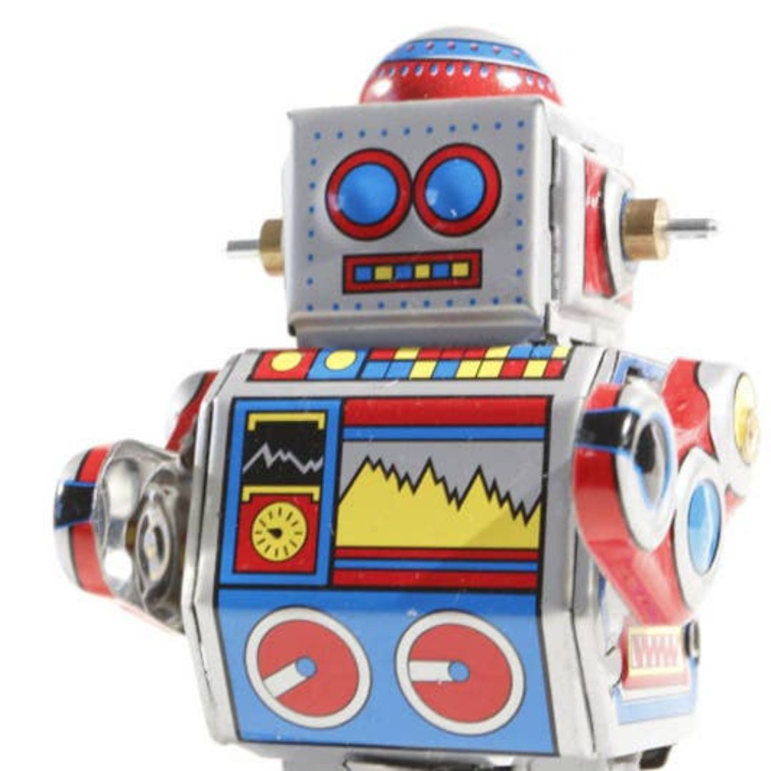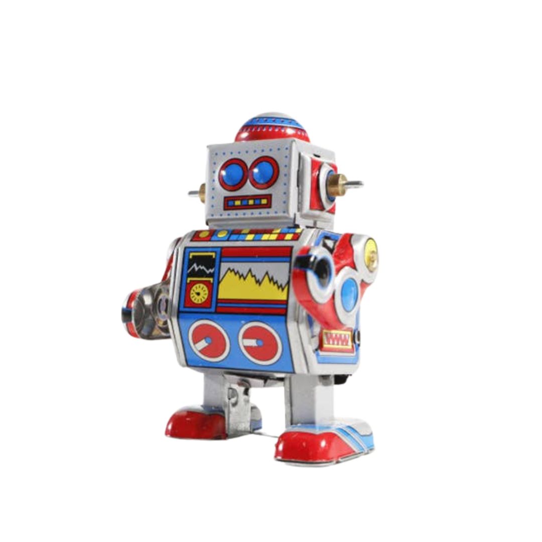 Der kleine Roboter lässt sich durch sein Aufziehwerk im inneren in Bewegung setzen. Dann läuft er vorwärts. Der Roboter ist ca. 8 cm hoch und ist schön lithografiert.