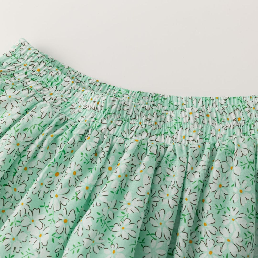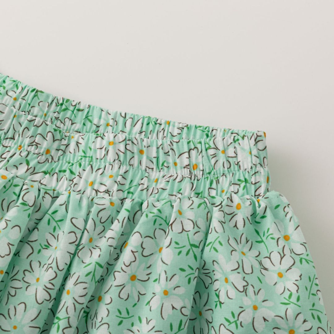 Mädchenrock in der Farbe hellgrün mit floralem Allover Muster. Entdecke den bezaubernden Mädchenrock, der mit seinem elastischen Bund nicht nur Komfort, sondern auch einen Hauch von Eleganz bietet. Der Rock ist aus hochwertigem Baumwollstoff gefertigt und besticht durch sein verspieltes Design mit süßem Blumen Allover Muster, das für eine fröhliche und mädchenhafte Ausstrahlung sorgt.