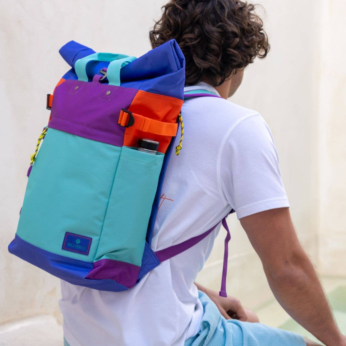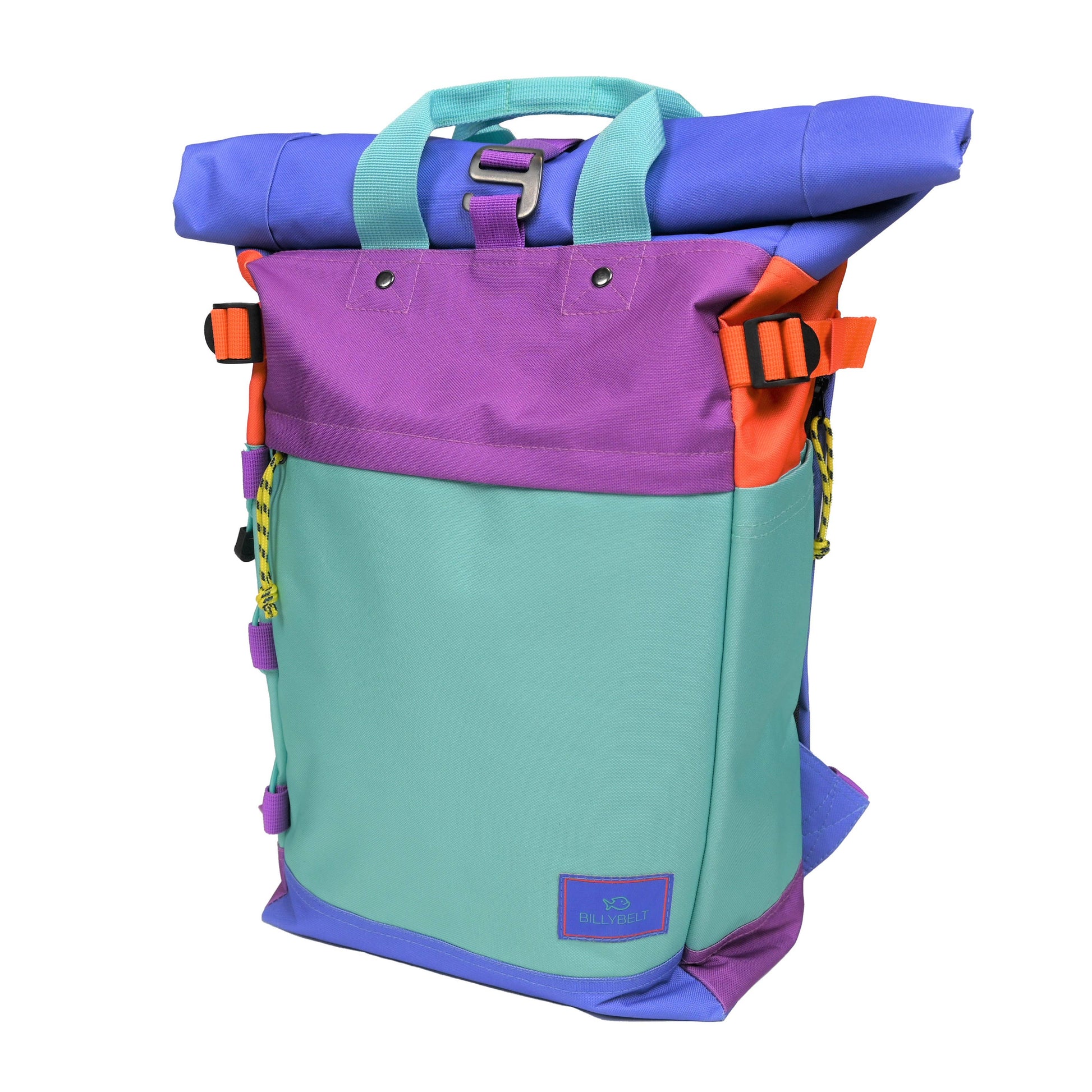 Dein stylischer Begleiter für jeden Tag: Rolltop-Rucksack in Türkis/Lila
