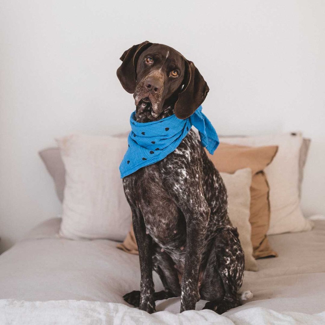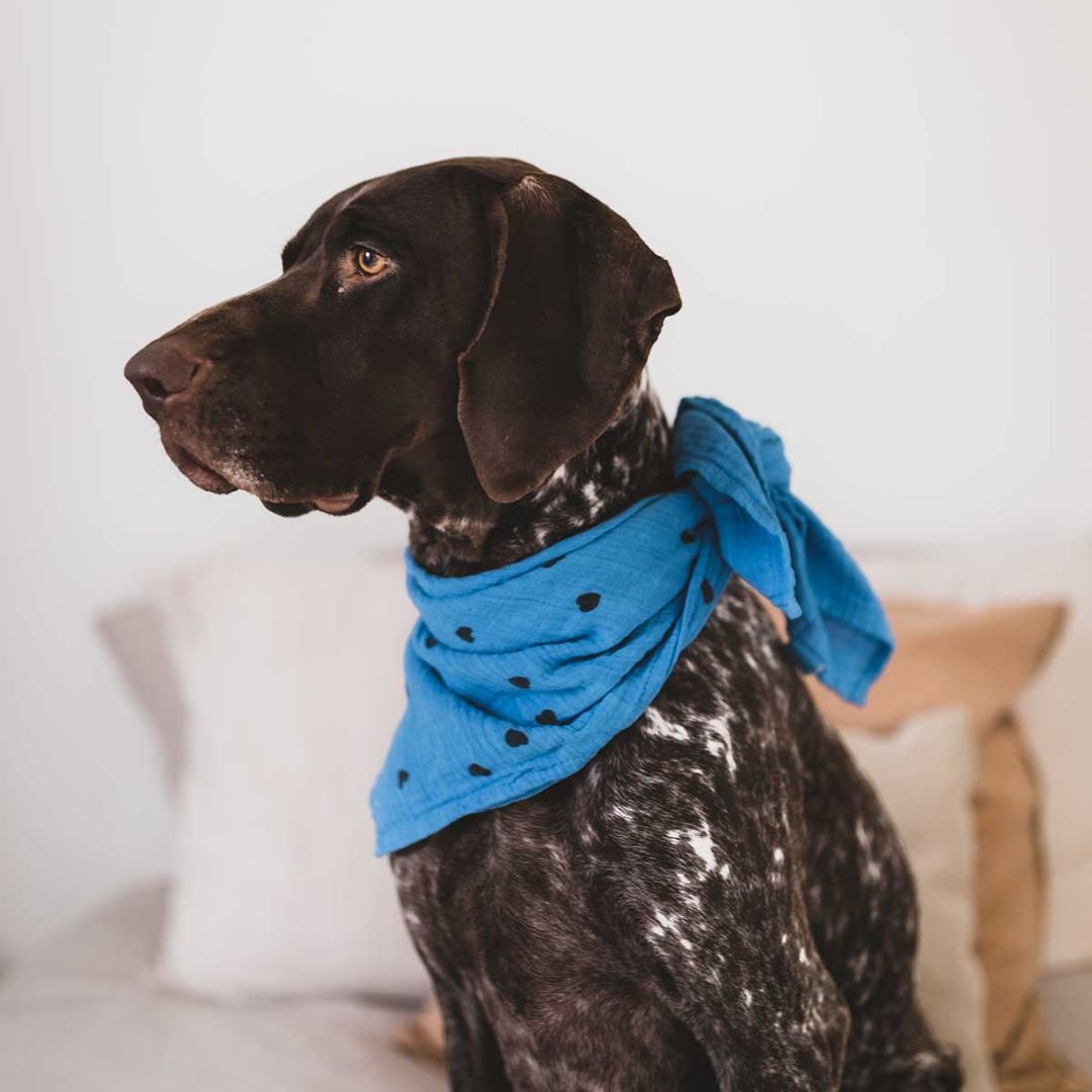 Dieses Musselintuch ist ideal für alle, die klare Farben lieben und ihrem Outfit mit einem besonderen Detail Ausdruck verleihen möchten. Der Herz-Print bringt Leichtigkeit und Freude in das Design und macht das Tuch zu einem echten Blickfang.