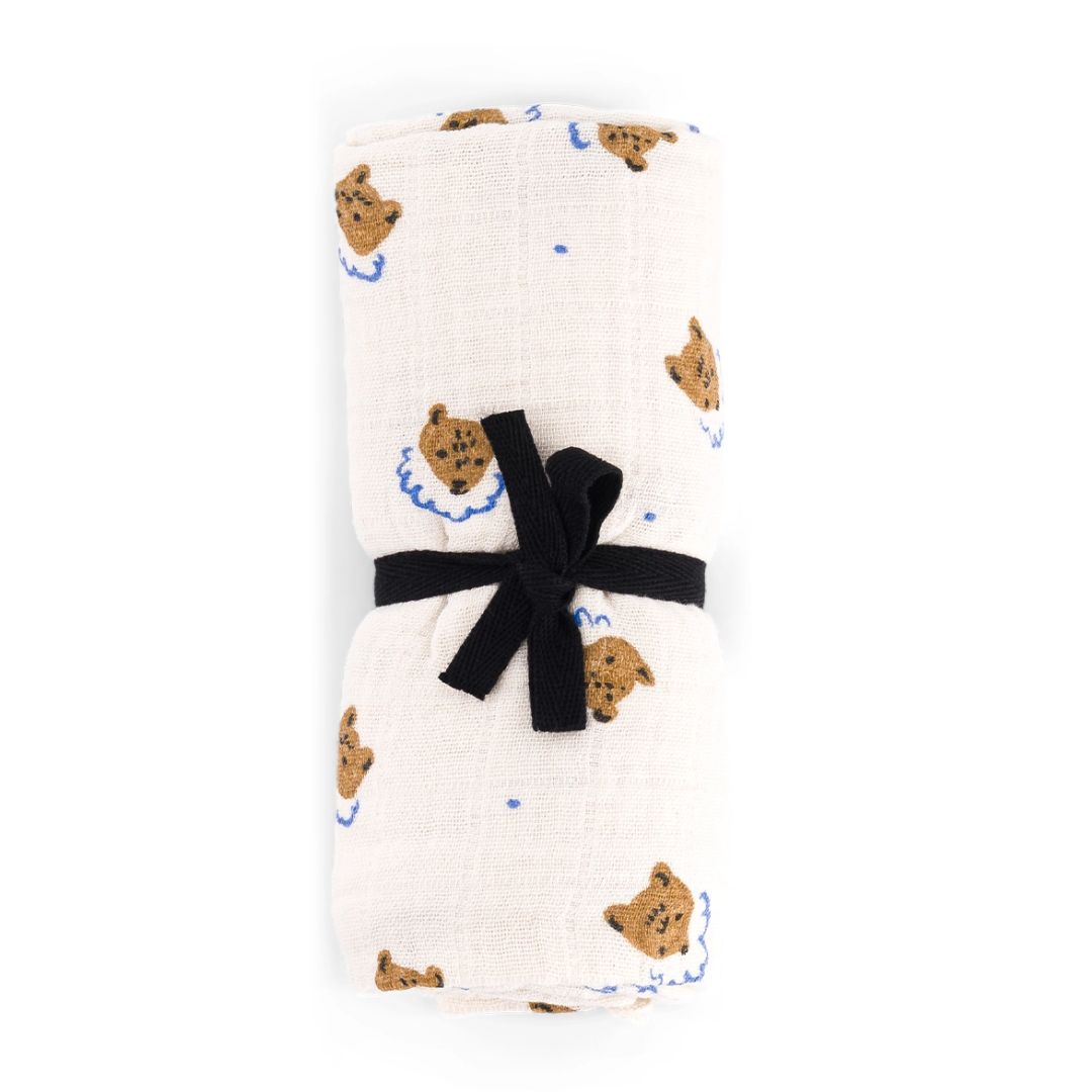 Wunderschönes Musselintuch mit Teddy-Allover-Muster