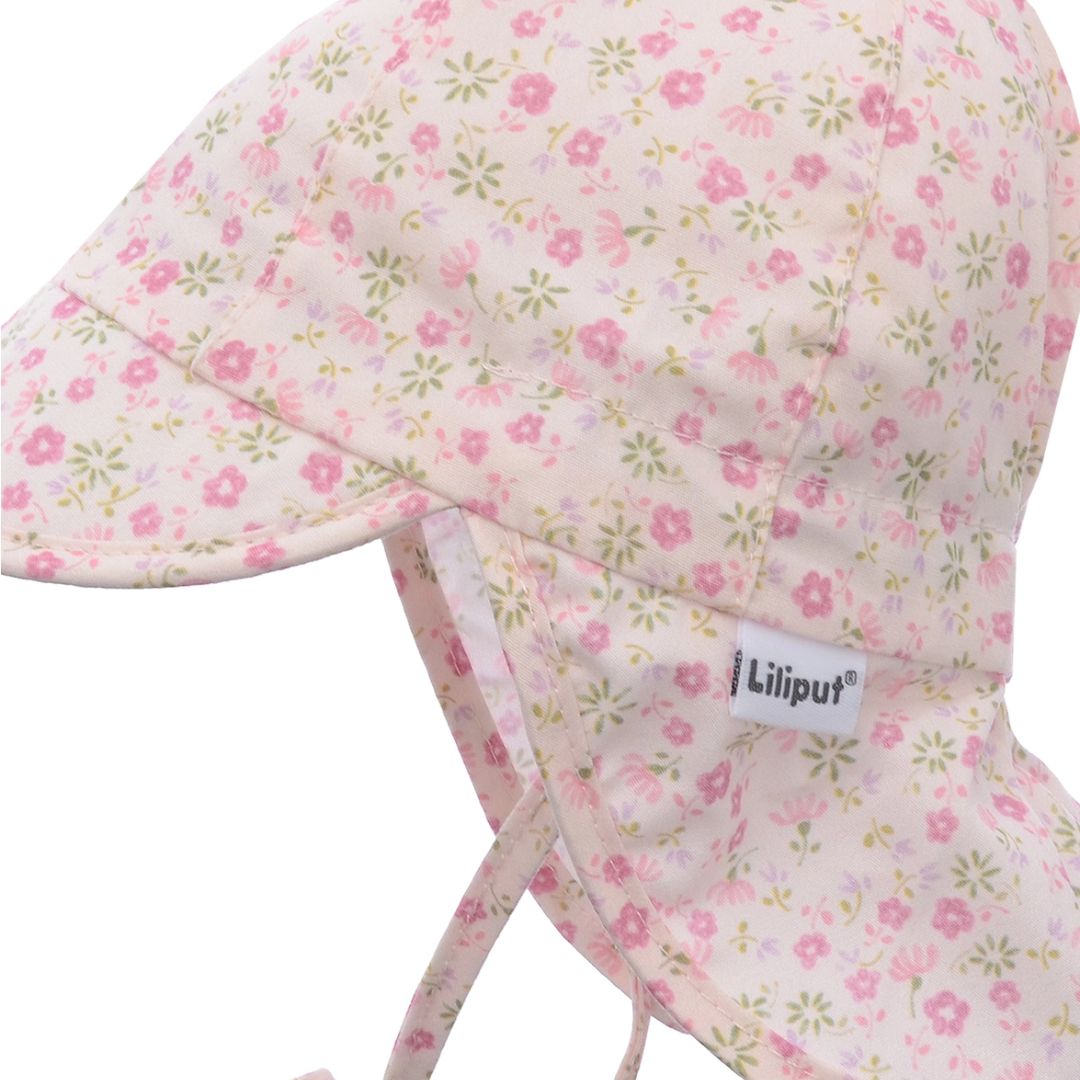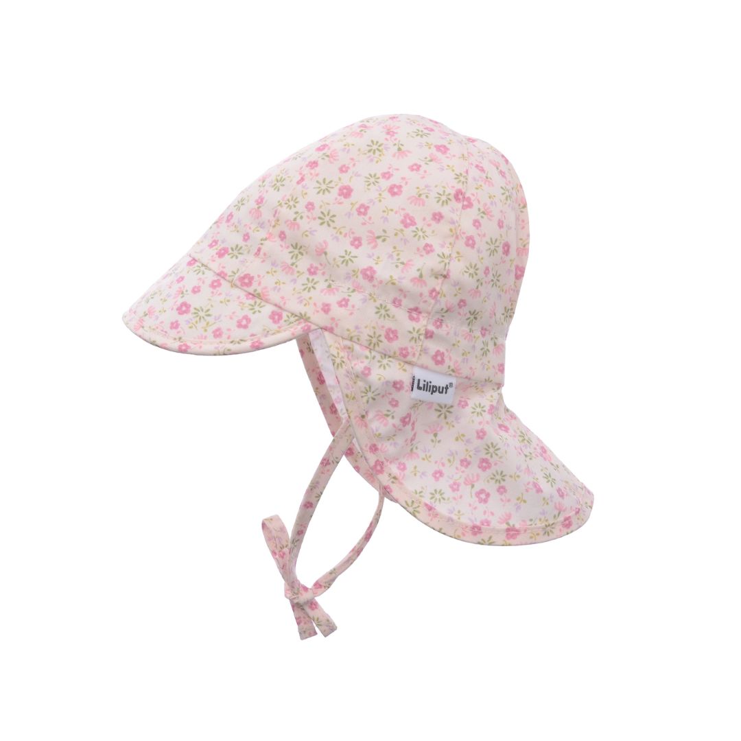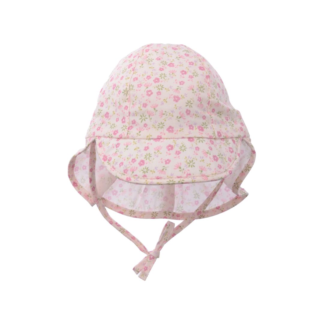 Praktische Schirmmütze mit süßem Allover Blümchenprint mit Nackenschutz und Bindeband. Ideal für heiße Tage, da er einen UV- Lichtschutzfaktor von 50+ hat. Aus atmungsaktiver Baumwolle gefertigt, bietet der Sommerhut den Kleinen einen bequemen Tragekomfort beim Spielen und ist dank des integrierten Gummibands im Nacken flexibel und weich am Kopf. Aus 100% Baumwolle