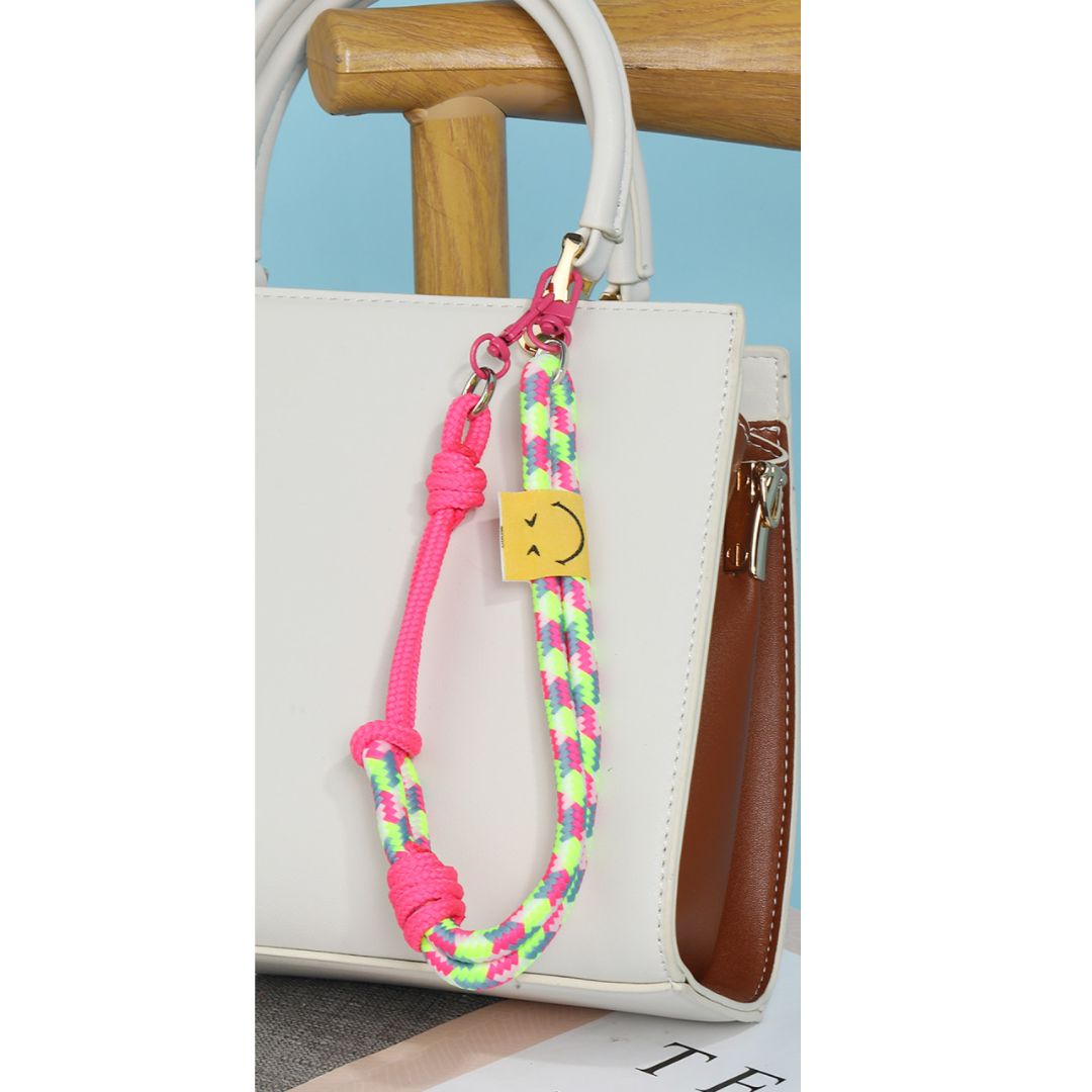 Schlüsselanhänger aus geflochtenem Seil rosa/neongelb