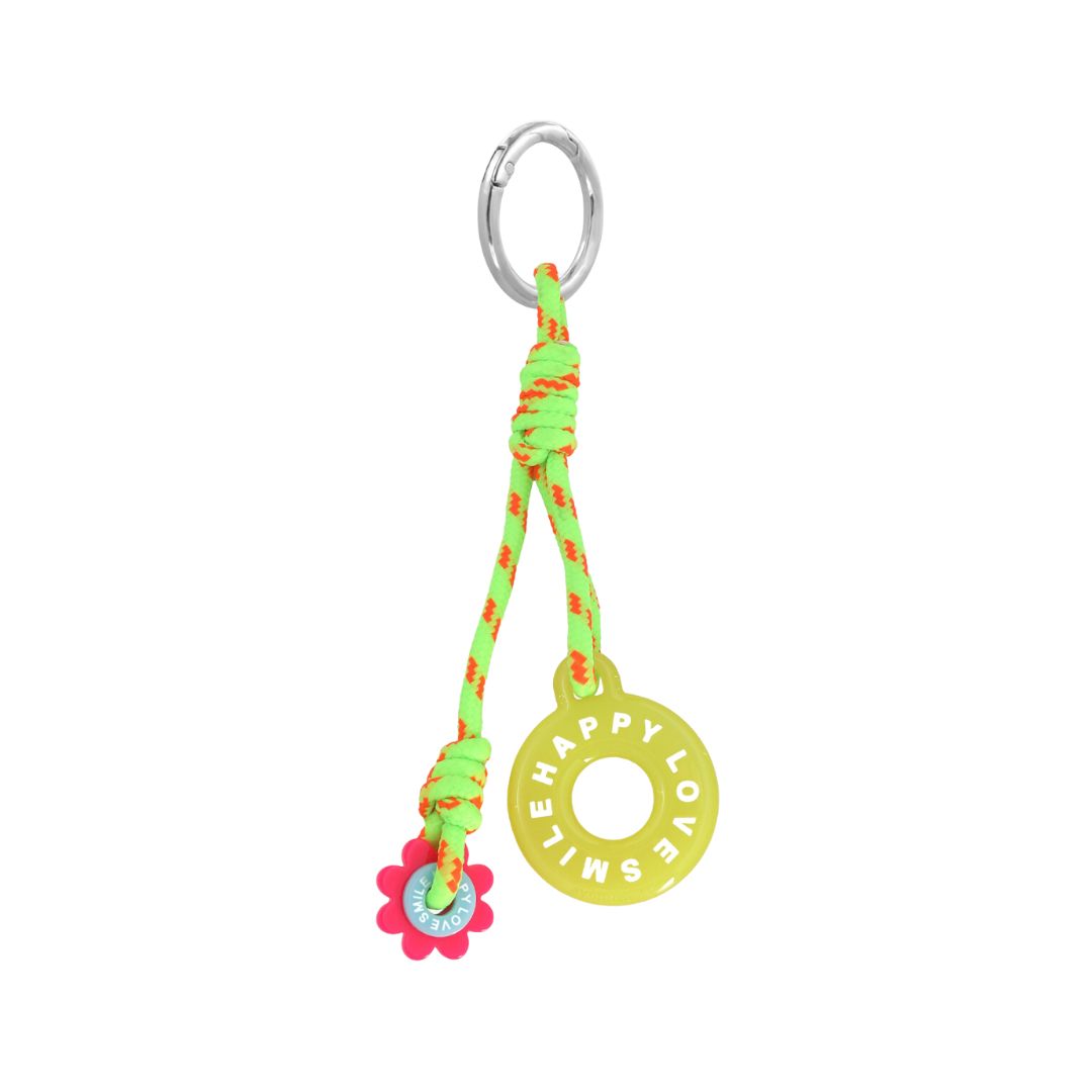 Schlüsselanhänger mit Blumen und kreisförmigen Motiven neongrün