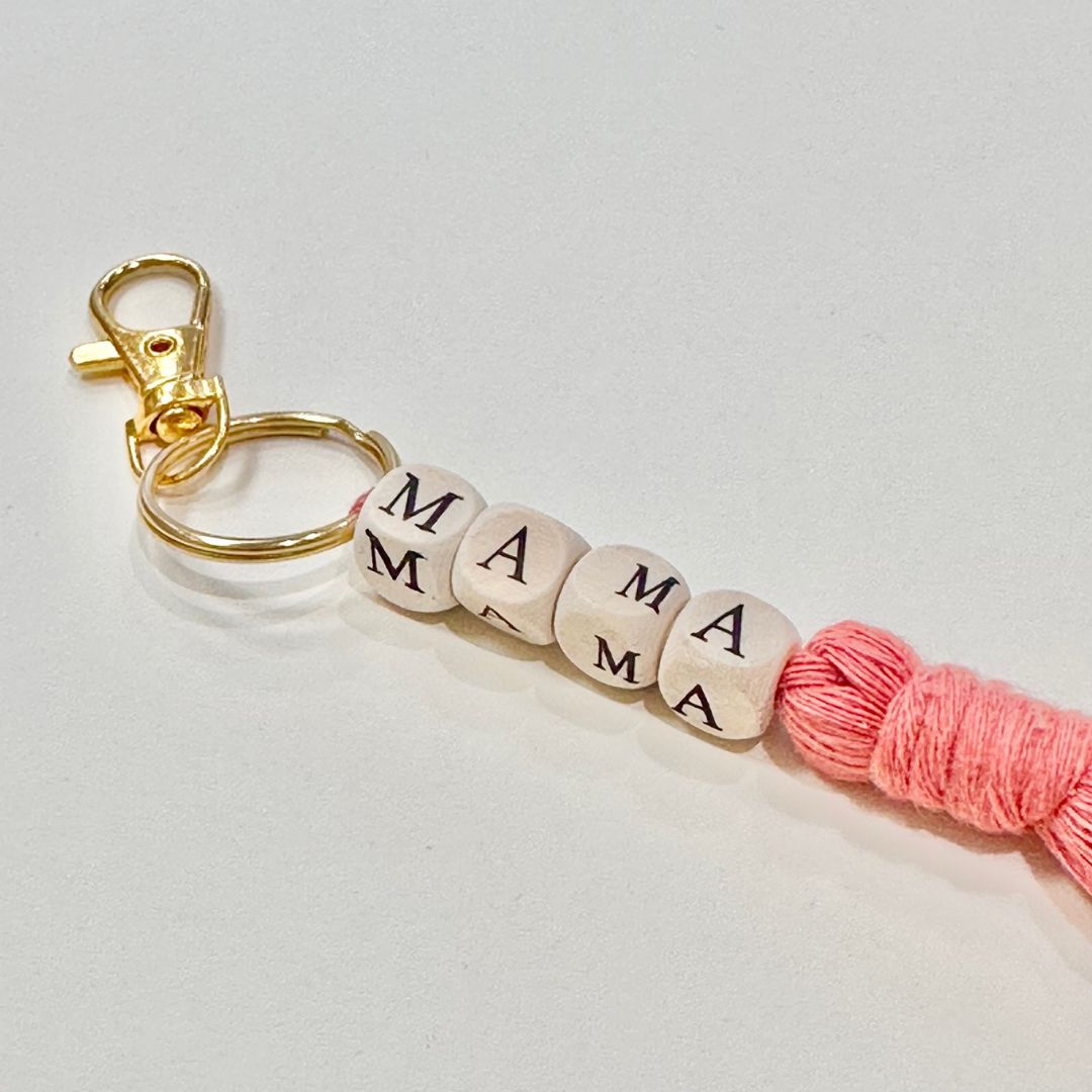 Die Buchstabenperlen sind aus Holz gefertigt, was dem Schlüsselanhänger einen natürlichen und warmen Charakter verleiht. Die Kombination aus den Materialien sorgt für ein harmonisches Gesamtbild, das zu vielen Stilen und Outfits passt.