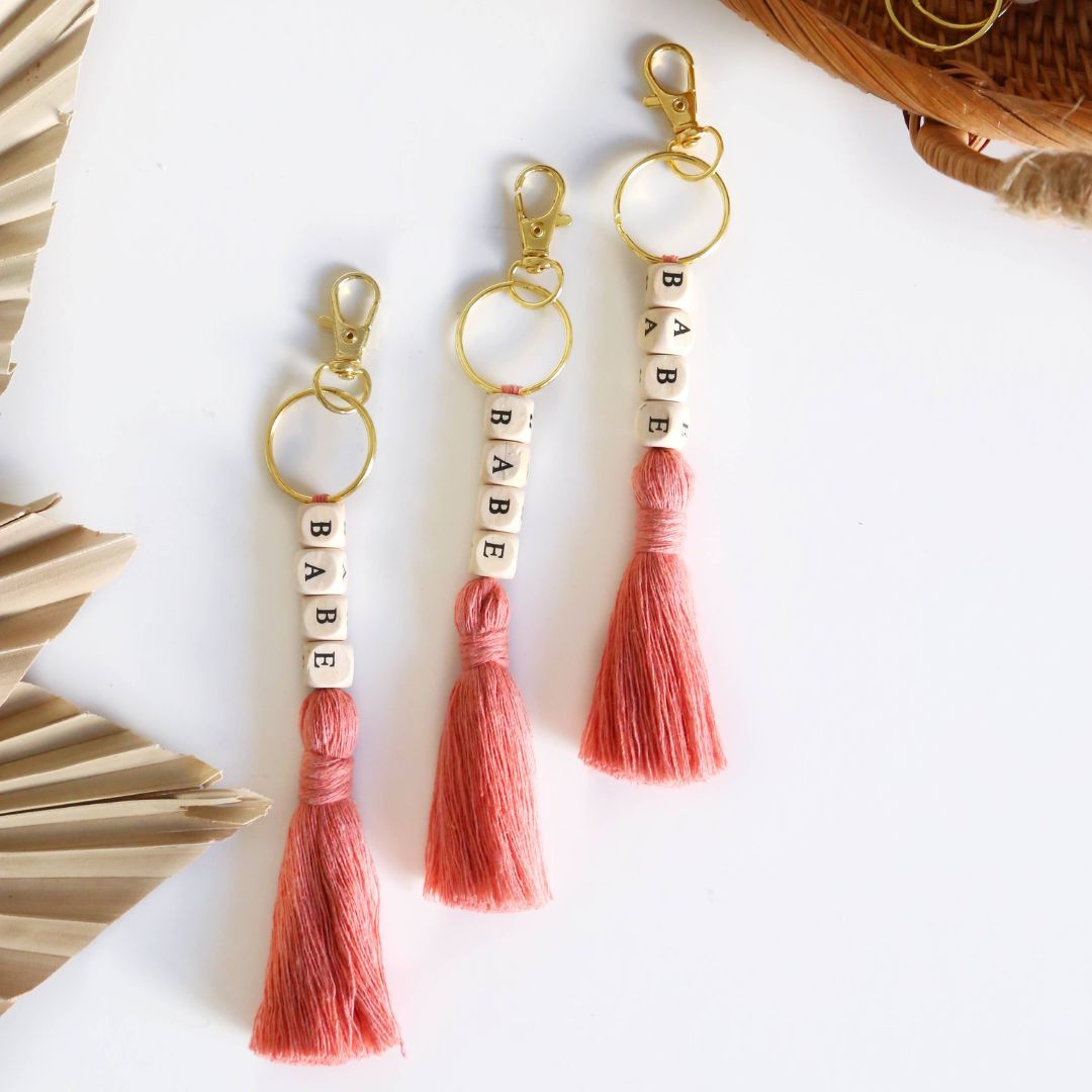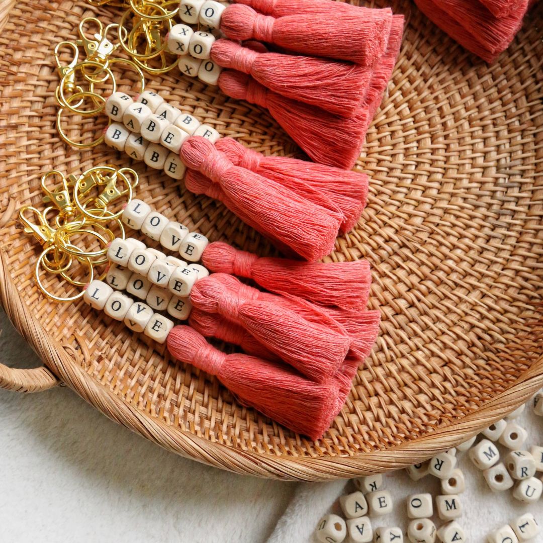 Was diesen Schlüsselanhänger besonders macht, sind die hübschen hölzernen Buchstabenperlen, die du individuell personalisieren kannst. Du hast die Möglichkeit, Namen, Initialen oder inspirierende Worte und Abkürzungen wie „BBF“ (Best Best Friend) oder „Beste Oma“ hinzuzufügen.