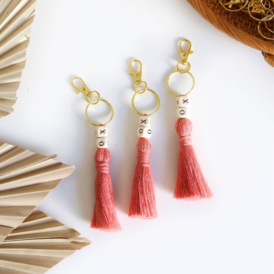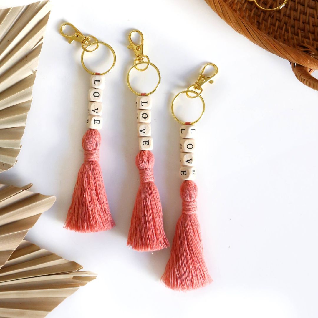 Suchst du ein besonderes Geschenk, das Persönlichkeit und Stil vereint? Unser Schlüsselanhänger mit altrosa Quaste eignet sich für zahlreiche Anlässe:
