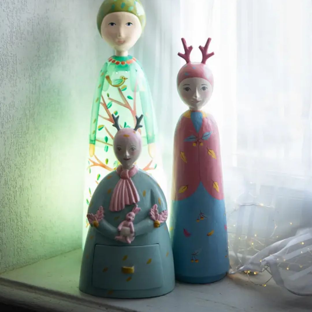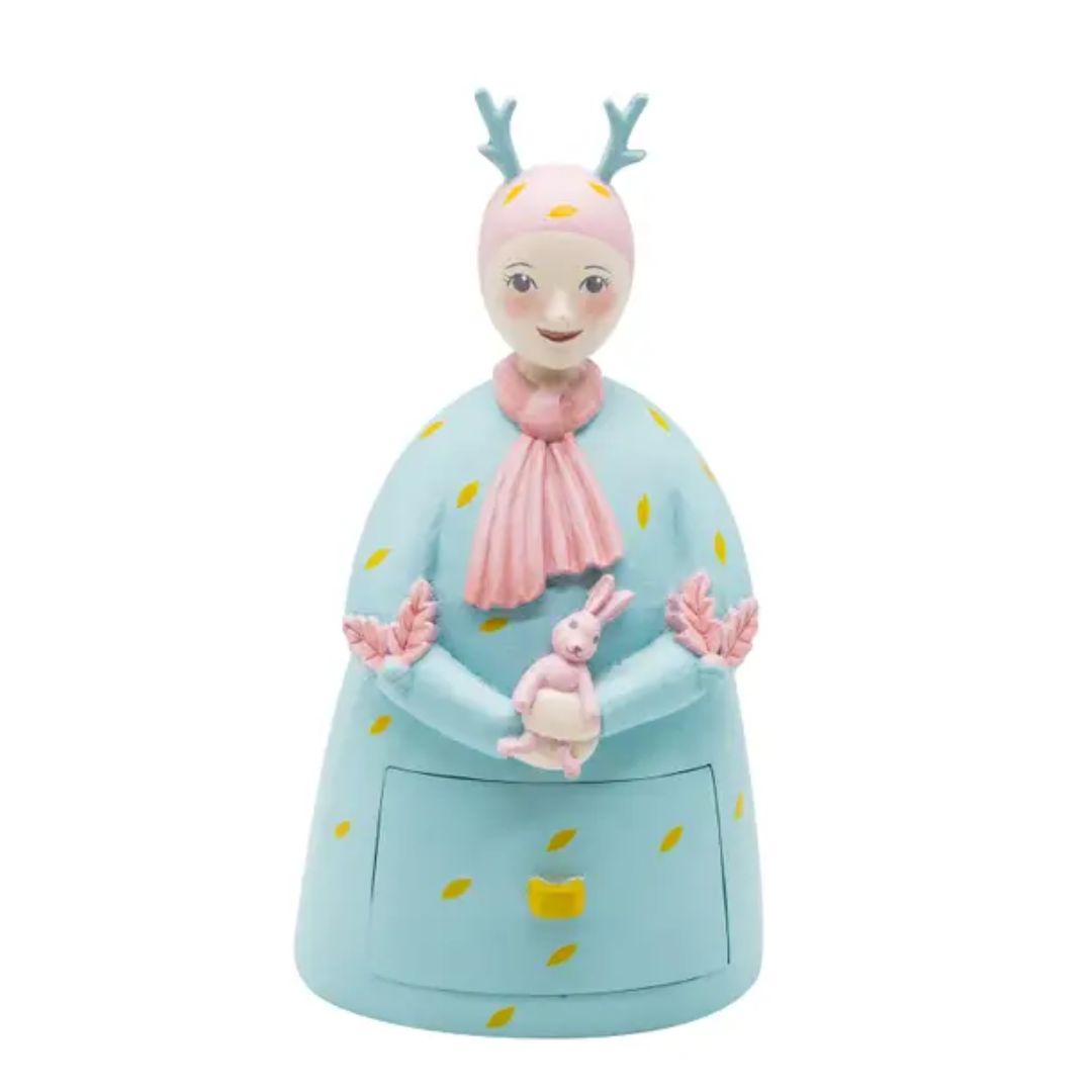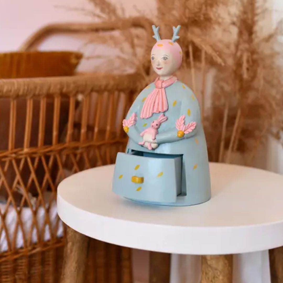 Damit schaffst Du eine wundervolle Atmosphäre im Kinderzimmer. Verstecke geheime Botschaften, kleine Schätze oder besondere Erinnerungen in den liebevoll gestalteten Schubladen der bauchigen Frau Daim. Die Boxen sind nicht nur funktional, sondern auch ein charmantes Accessoire, das den Raum auf magische Weise verschönert.