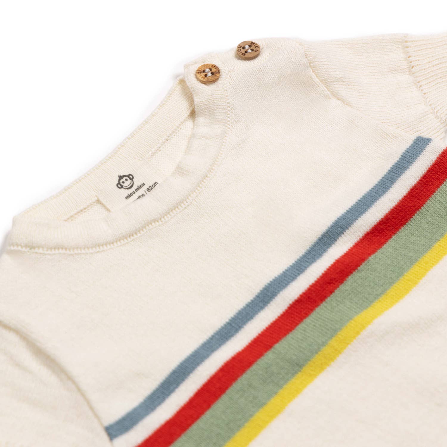 T-Shirt: Das T-Shirt ist in einem eleganten Ecru-Ton gehalten und mit charmanten Kontraststreifen versehen. Diese Design-Details verleihen dem T-Shirt eine moderne und zugleich zeitlose Note. Die praktischen Knöpfe an der Schulter erleichtern das An- und Ausziehen, was besonders wichtig ist, wenn es schnell gehen muss. Diese durchdachte Funktion ermöglicht es, das T-Shirt problemlos über den Kopf des Babys zu ziehen, ohne dabei die zarte Haut zu irritieren.