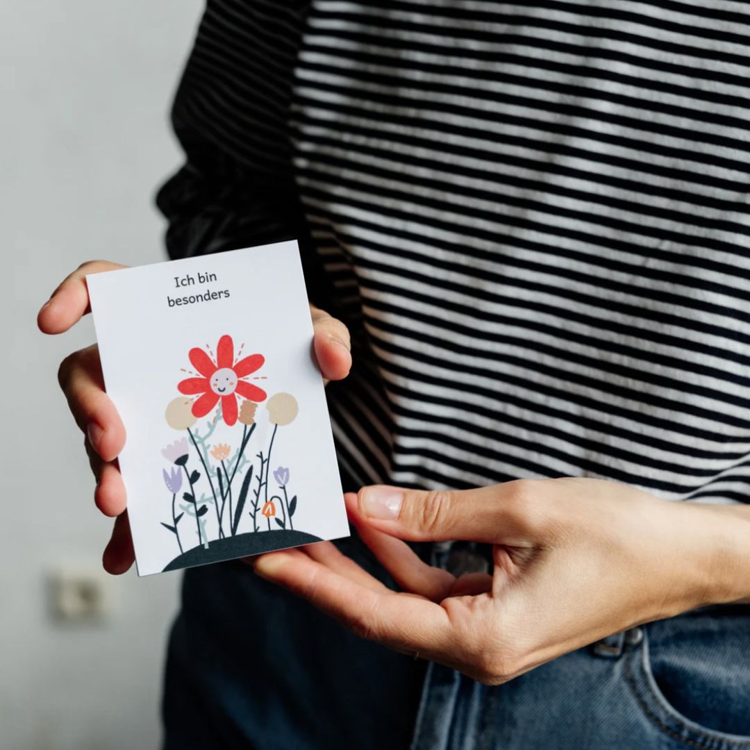 Dieses Set ist die erste Edition und kann perfekt mit dem „Affirmations-Kartenset für Kinder – Edition 2“ kombiniert werden. Zusammen ergeben sie 22 inspirierende Affirmationen, die dein Kind in verschiedenen Lebenssituationen stärken.