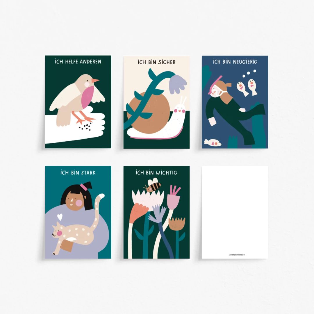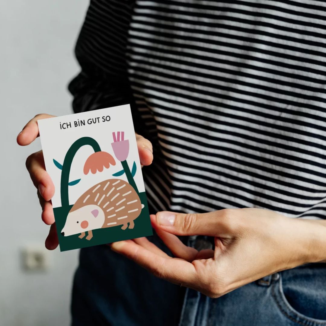 - Unterwegs dabei haben: Die kleine Größe erlaubt es, eine Karte im Schulranzen oder in der Jackentasche mitzunehmen – so ist die positive Botschaft immer griffbereit.