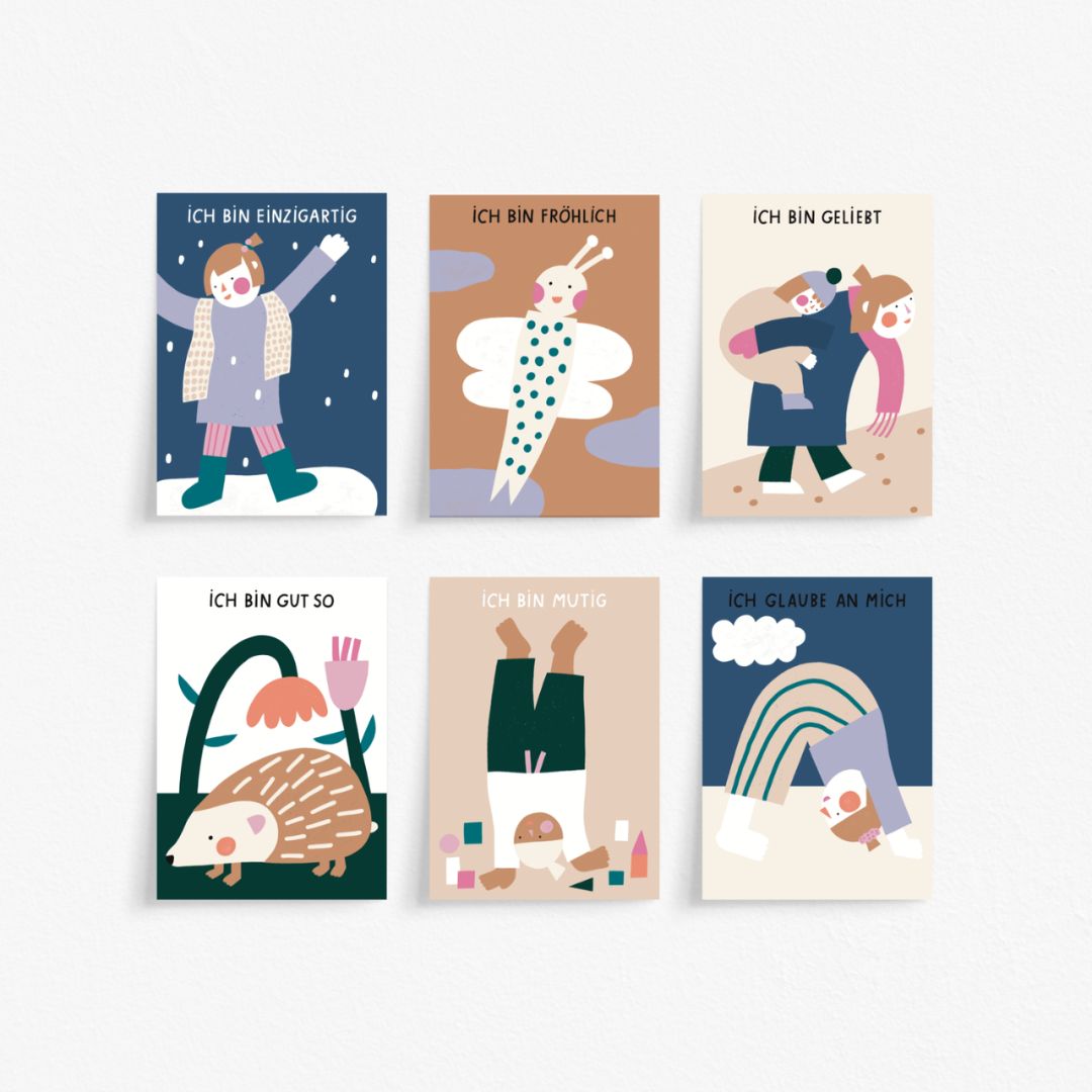 Kinder-Mutmachkarten mit 11 einfallsreich gestalteten Affirmationen, die dazu ermutigen, positive Gedanken, Freude und ein gestärktes Selbstvertrauen zu entwickeln.