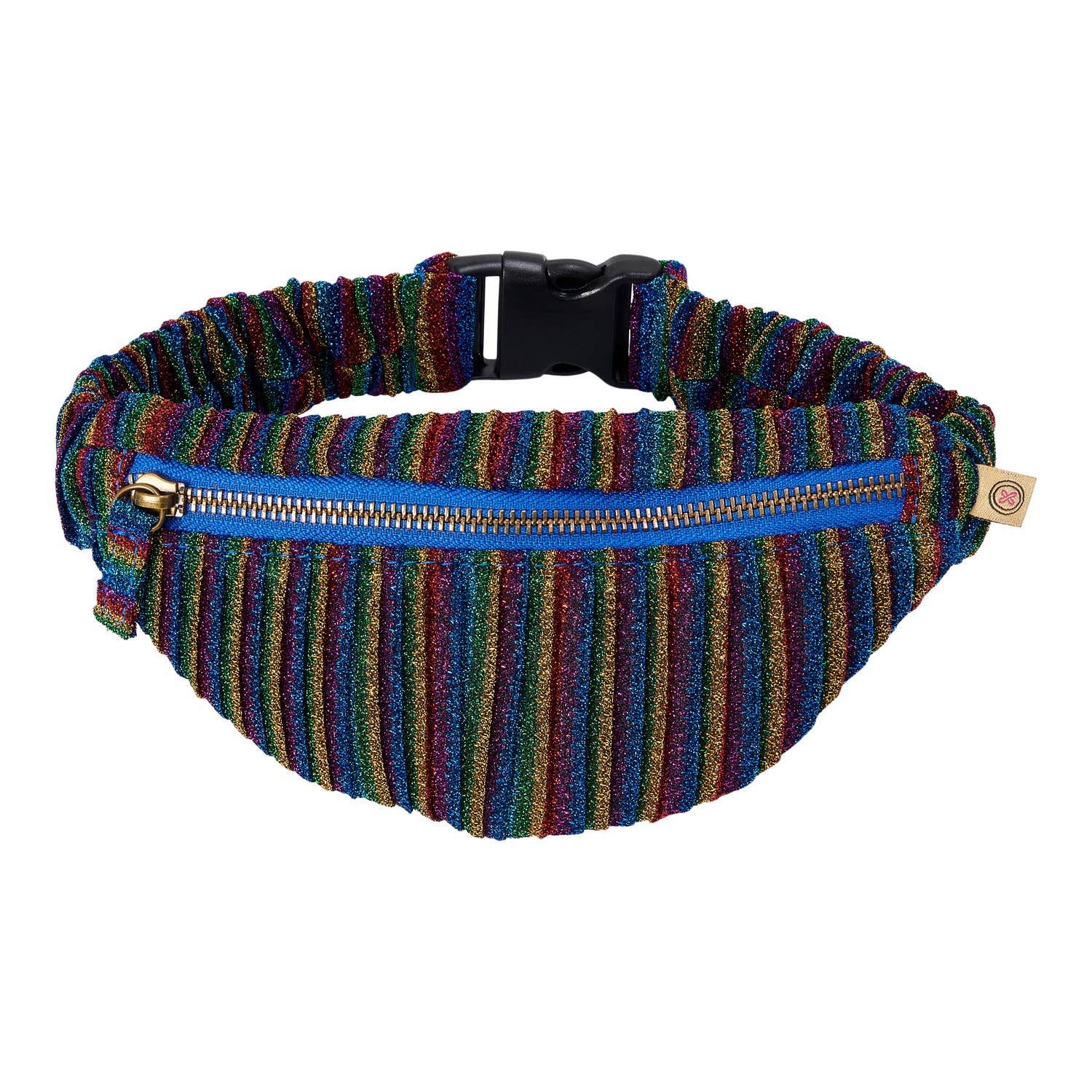 Gürteltasche mit mehreren Regenbogenglitzern: Das wichtigste Kleidungsstück dieser Saison, das jedes Mädchen tragen sollte, lässig auf den Hüften oder als Umhängetasche. Hergestellt aus einem weichen Glitzerstoff und einem bequemen Gummiband an der Innenseite des Riemens. Mit einer großen roten Schnalle und einem Frontreißverschluss lässt es sich leicht öffnen und schließen. Perfekt, um ihre persönlichen Gegenstände aufzubewahren.
