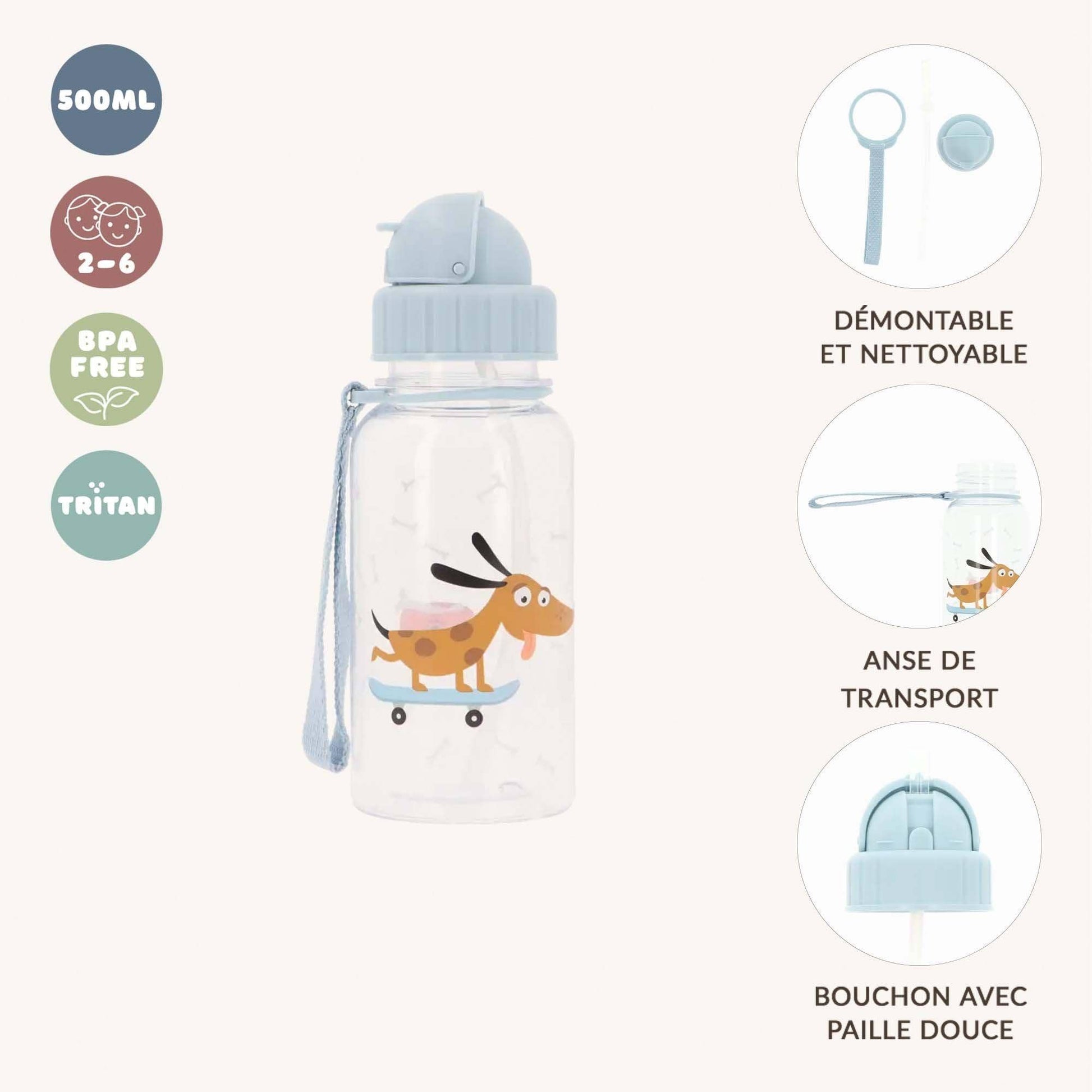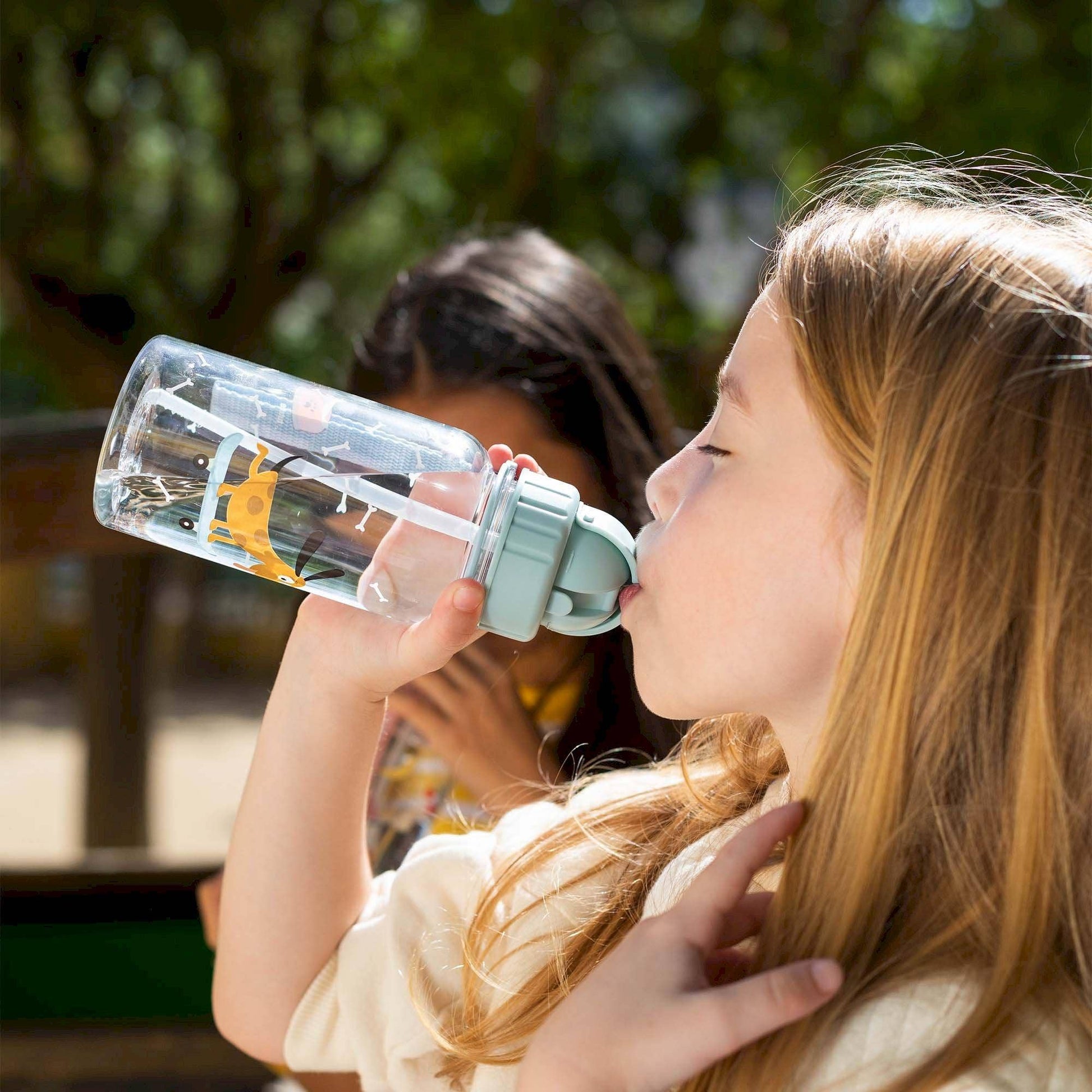 Dieses neue Modell gesunder Kunststoff-Flaschen hat einen faltbaren Silikonstrohhalm, der beim Öffnen des Deckels automatisch herauskommt und sich ideal zum Mitnehmen in die Schule eignet. Es hat einen langen Griff, mit dem du es hängend im Rucksack oder im Kinderwagen tragen kannst.